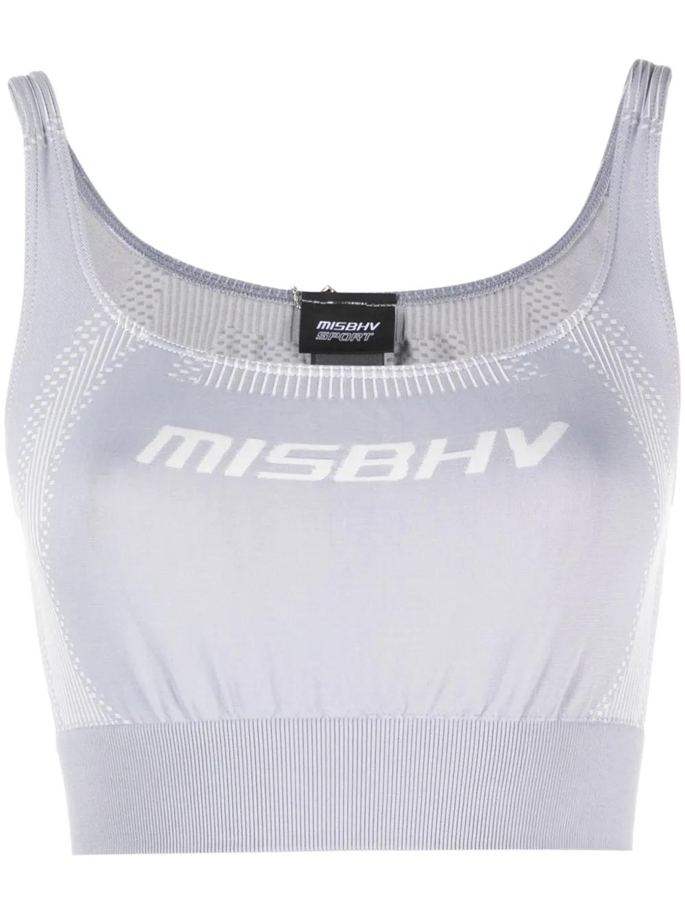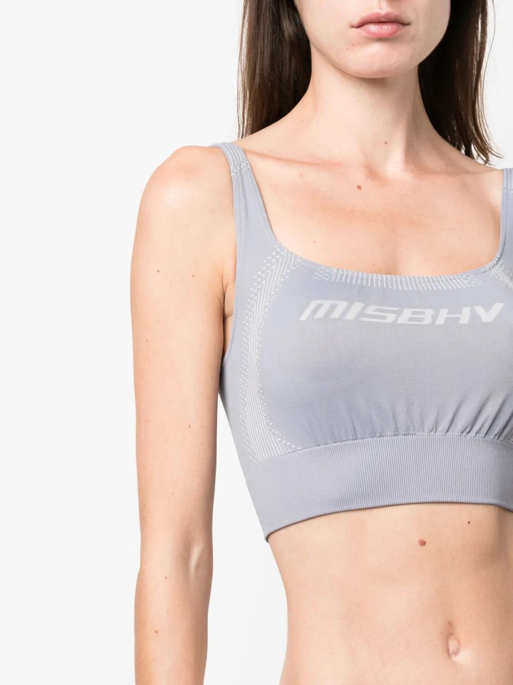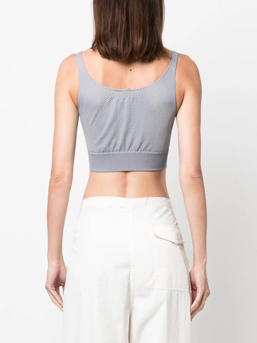 steel blue/white stretch-design logo print to the front square neck thin shoulder straps cropped ribbed hem