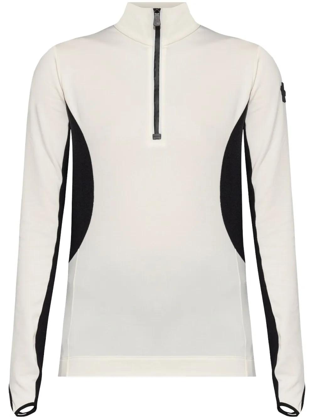 white/black stretch-jersey insulated design colour-block design half front zip fastening high neck long sleeves appliqué logo thumb slots straight hem