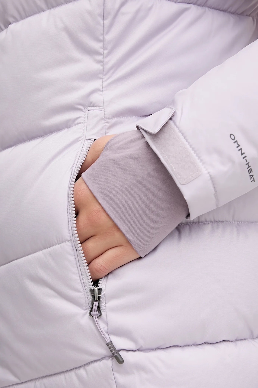 - Produkt zawiera materiały z włókien pochodzących z recyklingu. - Materiał z trwałym wykończeniem Omni-Shield™ jest szybkoschnący i plamoodporny. Dzięki swoim właściwościom nie wchłania wody i innych substancji w swoją strukturę, zapobiegając przemoczeniu i poplamieniu odzieży. - Wodoodporność oznacza podwyższoną odporność na działanie wody. Produkt w kontakcie z wodą zachowuje swoje właściwości, co pozwala na większy komfort użytkowania dzięki niższemu progowi przemakalności, nie gwarantuje jednak całkowitej wodoszczelności. - Warstwa materiału Omni-Heat Reflective™ pomaga utrzymać optymalny komfort termiczny poprzez odbijanie i zatrzymywanie ciepła wytwarzanego przez ciało. Jednocześnie doskonale odprowadza wilgoć z powierzchni skóry i rozprasza nadmiar ciepła, co pomaga zachować odpowiedni mikroklimat. - Wypełnienie Thermarator™ łączy w sobie wygląd i właściwości puchu naturalnego ze sprężystością syntetycznej izolacji. Kombinacja ta gwarantuje wysoki poziom ocieplenia i oddychalności, przy jednoczesnym zachowaniu niewielkiej wagi produktu. - Gramatura wypełnienia: 150 g. - Dolne krawędzie rękawów z regulacją na rzepy. - U dołu rękawów elastyczne ściągacze z otworami na kciuk, które osłaniają dłonie i zapobiegają podwijaniu się rękawów. - Dwie kieszenie boczne na ręce zapinane na zamek błyskawiczny. - Dodatkowa kieszeń wewnętrzna pozwala na bezpieczne przechowywanie drobiazgów. - Na rękawie funkcjonalna, zapinana na suwak kieszonka na ski-pass. - Mocno zabudowany, podwyższony kołnierz z osłoną podbródka i kaptur z regulacją za pomocą troczków, zapewniają ochronę przed zimnem, wiatrem i opadami śniegu lub deszczu. - Zapięcie na całej długości na suwak wyposażony w wewnętrzną klapkę wiatroszczelną. - Model wyposażony we wbudowany breloczek pozwalający bezpiecznie przechować klucze w trakcie aktywności. - Wewnątrz wbudowany pas śniegowy, który zapewnia dodatkową ochronę przed zimnem, a także zapobiega przedostaniu się śniegu pod kurtkę, również podczas upadku. - Dłuższy tył zapewnia osłonę podczas poruszania się. - Szerokość pod pachami: 51 cm. - Dolna krawędź wykończona troczkami ze stoperami, które dzięki możliwości regulacji obwodu dołu kurtki, zwiększają izolację od zimna. - Szerokość w ramionach: 41 cm. - Długość rękawa: 65 cm. - Długość: 70 cm. - Wymiary podane dla rozmiaru: S.