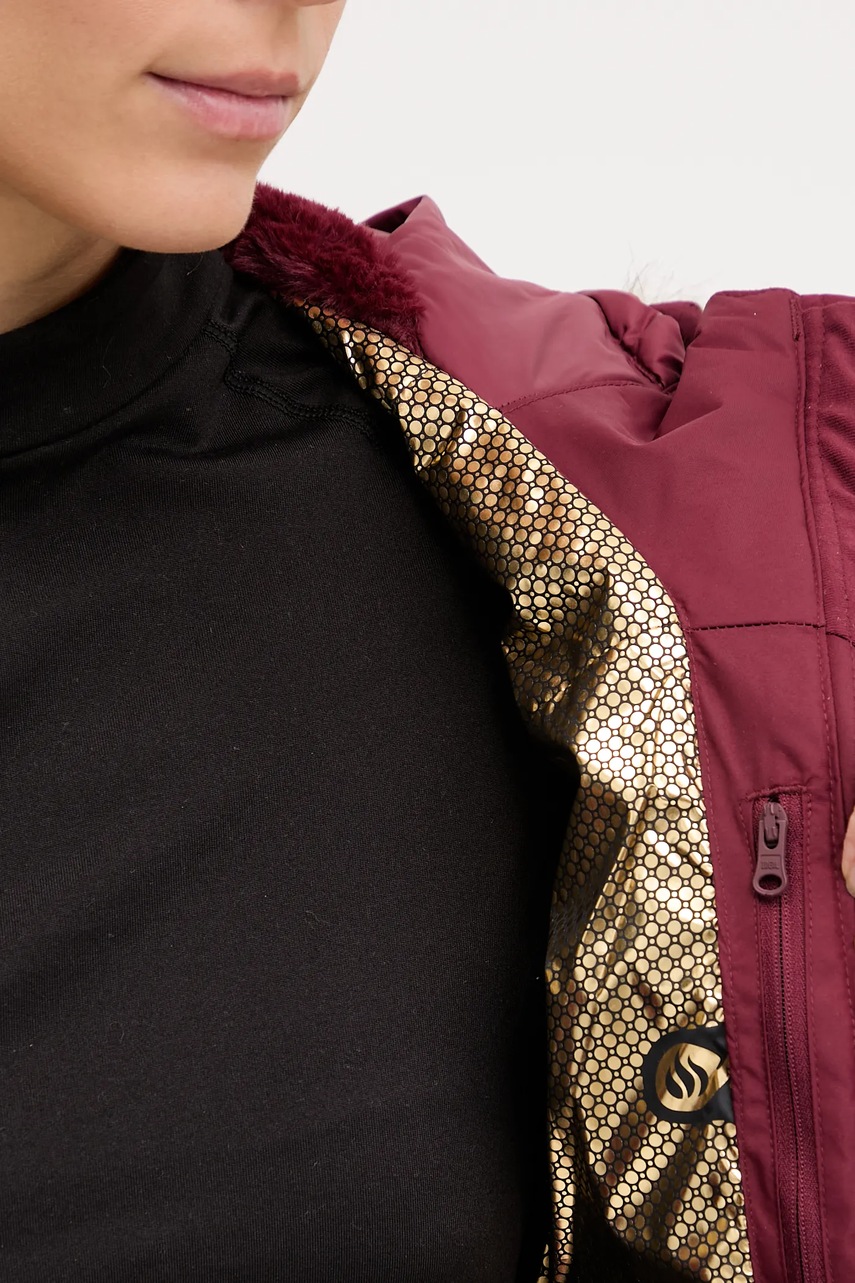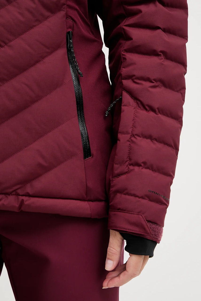 - Produkt zawiera materiały z włókien pochodzących z recyklingu. - Materiał, z którego został wykonany ten model, posiada właściwości wodoodporne. - Wodoodporność oznacza podwyższoną odporność na działanie wody. Produkt w kontakcie z wodą zachowuje swoje właściwości, co pozwala na większy komfort użytkowania dzięki niższemu progowi przemakalności, nie gwarantuje jednak całkowitej wodoszczelności. - Złota membrana Omni-Heat™ Infinity zapewnia optymalną temperatura ciała poprzez odbijanie i zatrzymywanie ciepła produkowanego przez organizm, a także odpowiednie rozpraszanie go, co zapobiega przegrzaniu. Jednocześnie technologia ta umożliwia dobrą cyrkulację powietrza i odprowadza wilgoć na zewnątrz. - Wypełnienie Thermarator™ łączy w sobie wygląd i właściwości puchu naturalnego ze sprężystością syntetycznej izolacji. Kombinacja ta gwarantuje wysoki poziom ocieplenia i oddychalności, przy jednoczesnym zachowaniu niewielkiej wagi produktu. - Klejone szwy główne uszczelniają i zapobiegają przenikaniu wiatru i wilgoci. - Dolne krawędzie rękawów z regulacją na rzepy. - U dołu rękawów elastyczne ściągacze z otworami na kciuk, które osłaniają dłonie i zapobiegają podwijaniu się rękawów. - Dwie kieszenie boczne na ręce zapinane na zamek błyskawiczny. - Na rękawie funkcjonalna, zapinana na suwak kieszonka na ski-pass. - Osobna kieszeń przeznaczona do przechowywania gogli. - Mocno zabudowany, podwyższony kołnierz z osłoną podbródka i kaptur z regulacją za pomocą troczków, zapewniają ochronę przed zimnem, wiatrem i opadami śniegu lub deszczu. - Wewnątrz wbudowany pas śniegowy, który zapewnia dodatkową ochronę przed zimnem, a także zapobiega przedostaniu się śniegu pod kurtkę, również podczas upadku. - Dolna krawędź wykończona troczkami ze stoperami, które dzięki możliwości regulacji obwodu dołu kurtki, zwiększają izolację od zimna. - Szerokość pod pachami: 48 cm. - Szerokość w ramionach: 42 cm. - Długość rękawa: 66 cm. - Długość: 72 cm. - Wymiary podane dla rozmiaru: S.