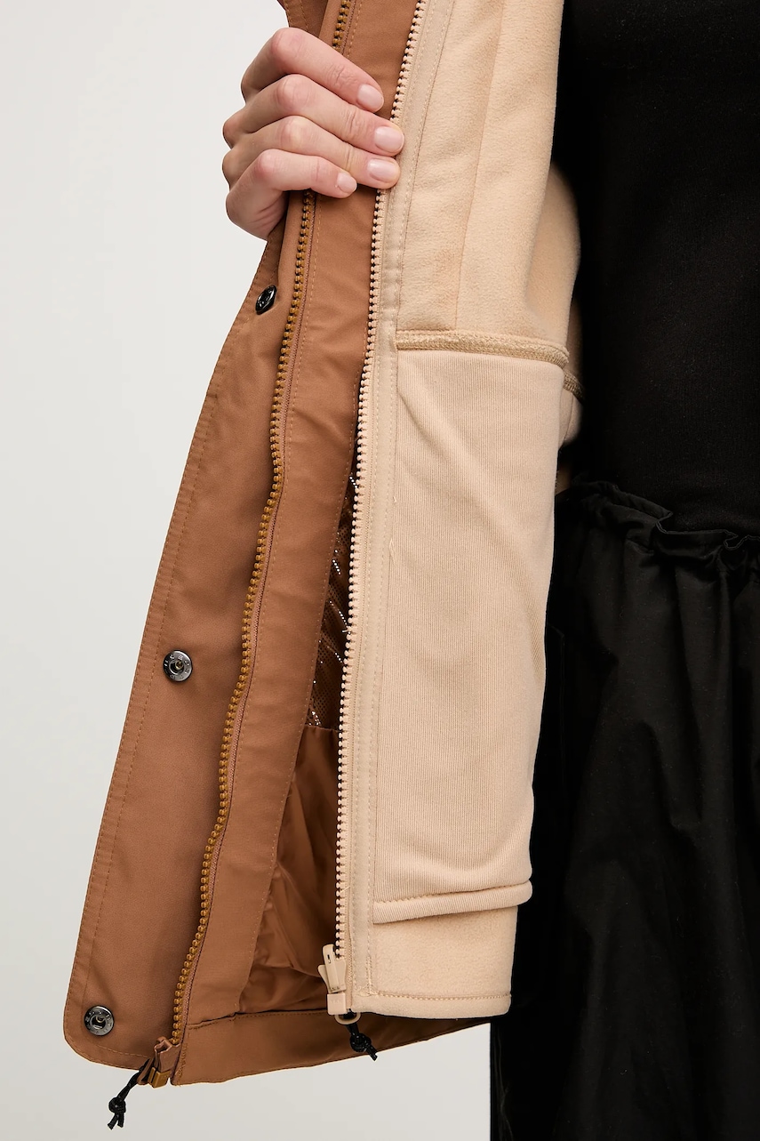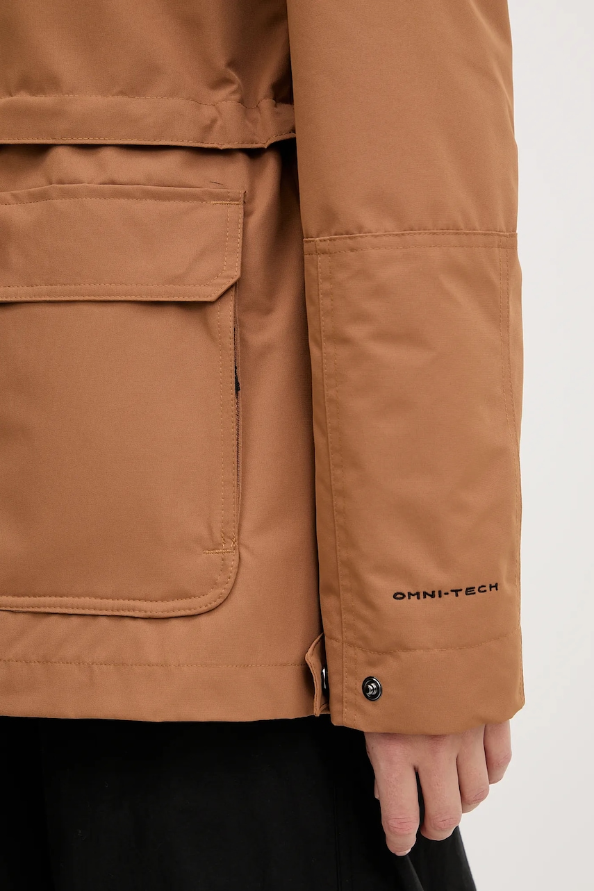 - Columbia Interchange to połączenie kurtki oraz polarowej podpinki, którą można nosić jako osobny model. - Model 2 w 1 składający się z dwóch warstw, które można nosić razem lub oddzielnie. Kurtka wierzchnia wykonana z materiału, który zapewnia wysoką wytrzymałość. Wyposażenie wierzchniej warstwy w wodoodporną membranę Omni-Tech® zapewnia także wysoką oddychalność, a uszczelnione szwy zwiększają ochronę przed niepogodą. Pod spodem bluza polarowa, stanowiąca warstwę docieplającą, wykonana z materiału gwarantującego wysoki komfort. - Wodoodporność oznacza podwyższoną odporność na działanie wody. Produkt w kontakcie z wodą zachowuje swoje właściwości, co pozwala na większy komfort użytkowania dzięki niższemu progowi przemakalności, nie gwarantuje jednak całkowitej wodoszczelności. - Warstwa materiału Omni-Heat Reflective™ pomaga utrzymać optymalny komfort termiczny poprzez odbijanie i zatrzymywanie ciepła wytwarzanego przez ciało. Jednocześnie doskonale odprowadza wilgoć z powierzchni skóry i rozprasza nadmiar ciepła, co pomaga zachować odpowiedni mikroklimat. - Dolne krawędzie rękawów z regulacją na zatrzaski. - Rozbudowany system kieszeni ułatwia bezpieczne przechowywanie drobiazgów. - Zapięcie na całej długości na suwak wyposażony w przypinaną na zatrzaski klapkę przeciwsztormową. - Podwyższony kołnierz gwarantuje dodatkową ochronę przed chłodem. - Wbudowany kaptur zapewnia dodatkowe ciepło i osłonę, gdy jest to potrzebne. - Dłuższy tył zapewnia osłonę podczas poruszania się. - Długość rękawa(mierzona od kaptura): 76 cm. - Szerokość pod pachami: 53 cm. - Wymiary podane dla rozmiaru: S. - Długość z przodu: 72 cm. - Długość z tyłu: 80 cm.
