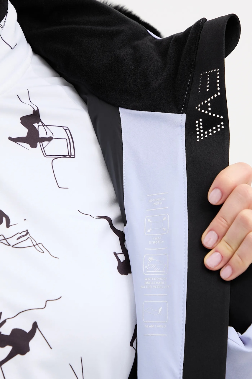 - Model z linii Armani Sustainability Values, wykonany częściowo z włókien organicznych, do produkcji których zużyto znacznie mniej środków chemicznych i energii elektrycznej. - Wypełnienie syntetyczne Stratum7, wykonane ze specjalnych mikrowłókien, gwarantuje optymalny poziom ocieplenia i odpowiednią cyrkulację powietrza, niezależnie od warunków pogodowych. Włókna, z których została stworzona ocieplina, wyprodukowano z przetworzonych plastikowych butelek, a całość posiada certyfikację GRS (Global Recycled Standard). - Model wykonany z materiału z membraną Protectum7, która gwarantuje wysoką wodoodporność oraz optymalną oddychalność, co zapobiega przegrzaniu w trakcie intensywnej aktywności. Zastosowanie w materiale rozwiązania 4-way stretch zapewnia mu elastyczność i rozciągliwość w czterech kierunkach, co znacznie zwiększa wygodę użytkowania i nie krępuje ruchów. - Wewnątrz dopinany pas śniegowy, który zapewnia dodatkową ochronę przed zimnem, a także zapobiega przedostaniu się śniegu pod kurtkę, również podczas upadku. - Zapięcie na dwustronny suwak ułatwia szybką wentylację. - Odpinany kaptur zapewnia dodatkowe ciepło i osłonę, gdy jest to potrzebne. - Mocno zabudowany, podwyższony kołnierz z osłoną podbródka zapewnia ochronę przed zimnem, wiatrem i opadami śniegu lub deszczu. - Na rękawie funkcjonalna, zapinana na suwak kieszonka na ski-pass. - Dwie wsuwane i zapinane na suwak kieszenie boczne. - Kieszeń wewnętrzna zapinana na suwak pozwala na bezpieczne przechowywanie drobiazgów. - Osobna kieszeń przeznaczona do przechowywania gogli. - Do modelu dołączona ściereczka przeznaczona do czyszczenia gogli. - U dołu rękawów elastyczne ściągacze z otworami na kciuk, które osłaniają dłonie i zapobiegają podwijaniu się rękawów. - Dolna krawędź wykończona troczkami ze stoperami, które dzięki możliwości regulacji obwodu dołu kurtki, zwiększają izolację od zimna. - W talii pasek, który modeluje sylwetkę i dodatkowo podkreśla talię. - Długość rękawa: 62 cm. - Długość: 65 cm. - Szerokość pod pachami: 46 cm. - Szerokość w ramionach: 40 cm. - Wymiary podane dla rozmiaru: M.