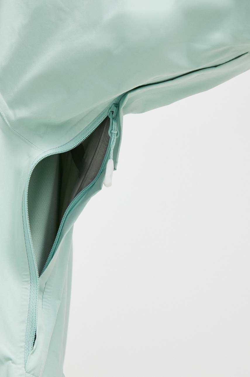 - Model posiadający certyfikat Bluesign® Standart. Produkt z tym oznaczeniem jest bezpieczny dla konsumenta, a jego produkcja odbywa się z materiałów pochodzących z odpowiedzialnych źródeł i z minimalnym wpływem na środowisko. - Produkt wyprodukowany zgodnie z założeniami Fair Wear Foundation, organizacji zrzeszającej marki odzieżowe tworzące produkty w bardziej zrównoważony i etyczny sposób. Produkty oznaczone znakiem Fair Wear powstały w fabrykach, które pozytywnie przeszły zewnętrzny audyt i zapewniają pracownikom odpowiednie warunki pracy oraz wynagrodzenie. - Wykorzystany w produkcie 2,5 warstwowy laminat GORE-TEX PACLITE® gwarantuje ochronę przed wiatrem i deszczem oraz wysoki poziom oddychalności. Zamiast warstwy w postaci podszewki, zastosowano powłokę z tworzywa sztucznego, która zabezpiecza membranę i pozwala zachować niewielką wagę produktu. Dodatkowo odzież wykorzystująca tą technologię jest niezwykle pakowna, co ułatwia posiadanie jej zawsze pod ręką. - Trwała impregnacja materiału PFC-free DWR (PFC-free Durable Water Repellency) zapewnia wodoodporność i nie zawiera perfluorowych substancji chemicznych (PFC). Zastosowanie tej metody zapobiega wchłanianiu się wody przez materiał sprawiając, że woda skrapla się na powierzchni i spływa po niej. Impregnat ten jest nietoksyczny i przyjazny środowisku. - W tym modelu wykorzystano wysokiej jakości suwaki YKK®. W miejscach nieosłoniętych materiałem, zastosowano ich wodoodporny wariant YKK AquaGuard® z laminowaną taśmą poliuretanową. - Ergonomiczna konstrukcja rękawów zapewnia pełną swobodę ruchu. - Dolne krawędzie rękawów z regulacją na rzepy. - Pod pachami otwory wentylacyjne zapinane na suwak, zapewniające optymalną cyrkulację powietrza i komfort termiczny. - Dwie kieszenie boczne na ręce zapinane na zamek błyskawiczny. - Posiada zapięcie na suwak i podwyższony kołnierz z osłoną podbródka. - Kaptur z daszkiem i regulacją za pomocą troczków, zwiększa ochronę przed wiatrem i deszczem. - Dolna krawędź wykończona troczkami ze stoperami, które dzięki możliwości regulacji obwodu dołu kurtki, zwiększają izolację od zimna. - Oddychalność: RET