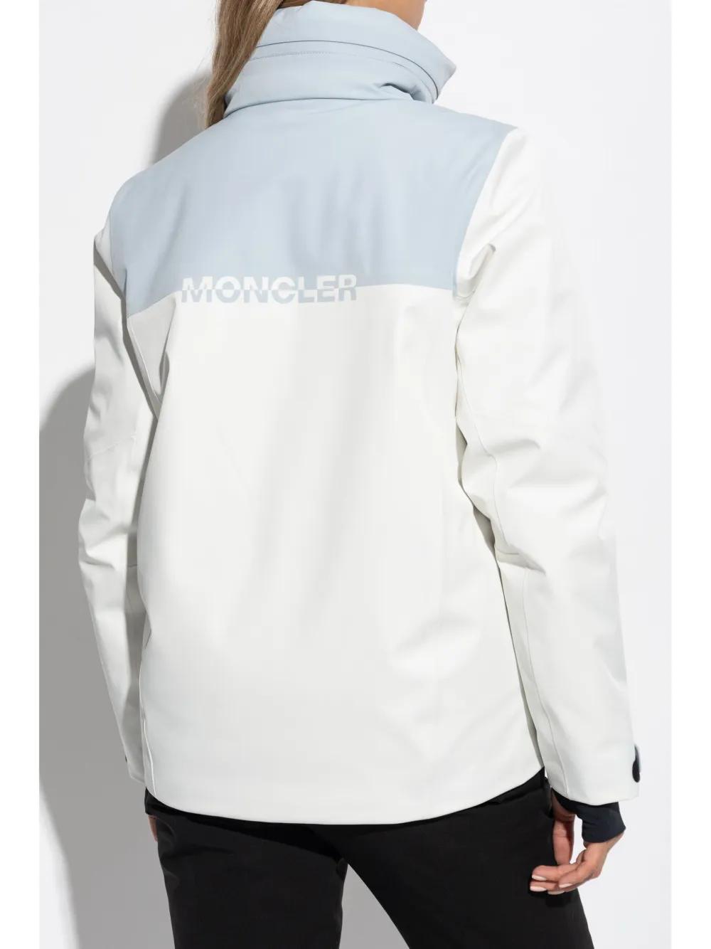 white/blue zip fastening high neck long sleeves logo print at the chest sleeve zip pocket logo print to the rear straight hem