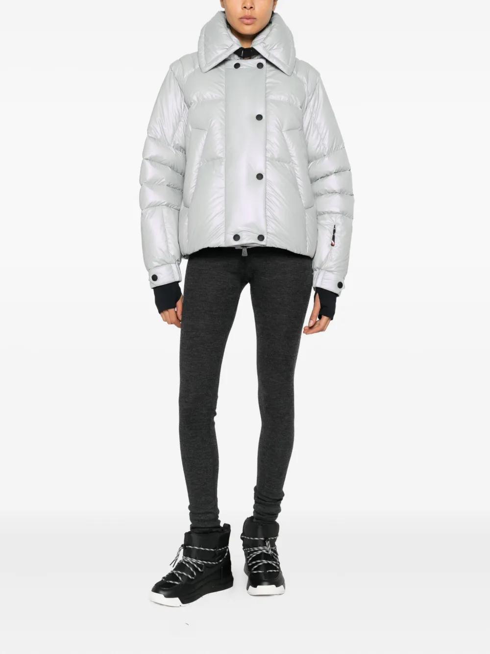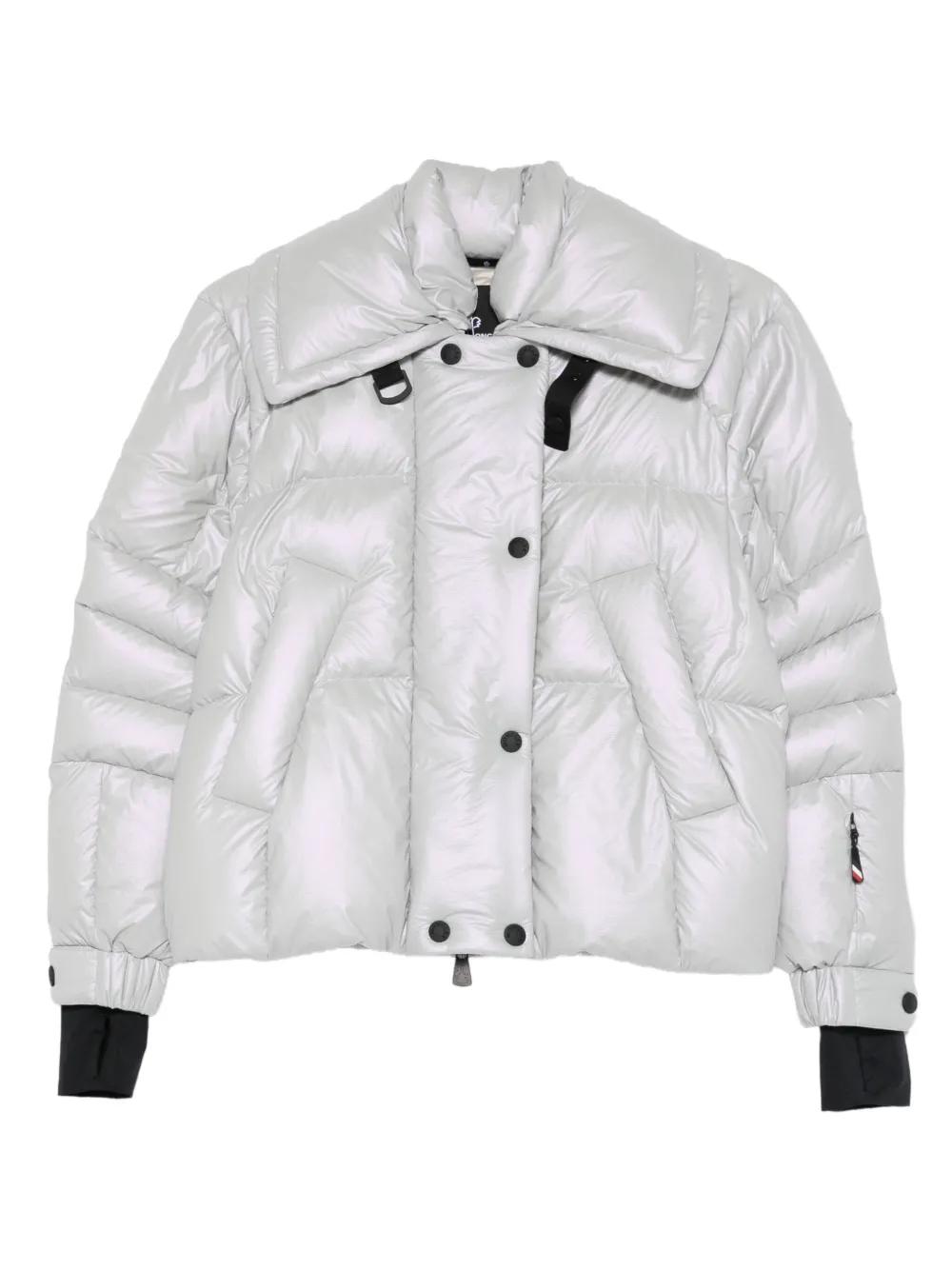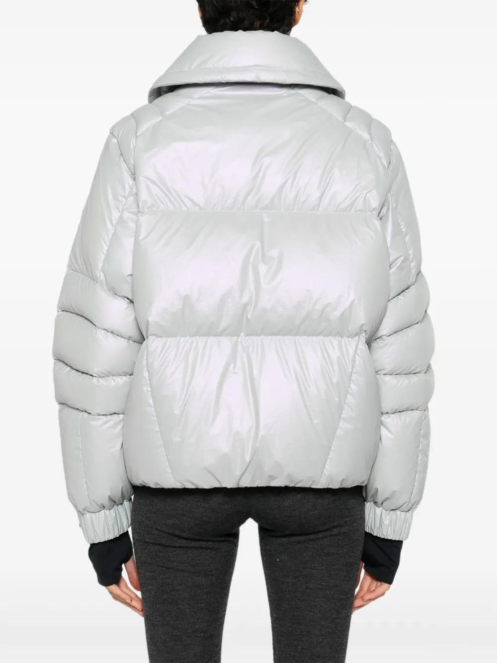 blue button fastening wide collar ribbed cuffs quilted pull tab