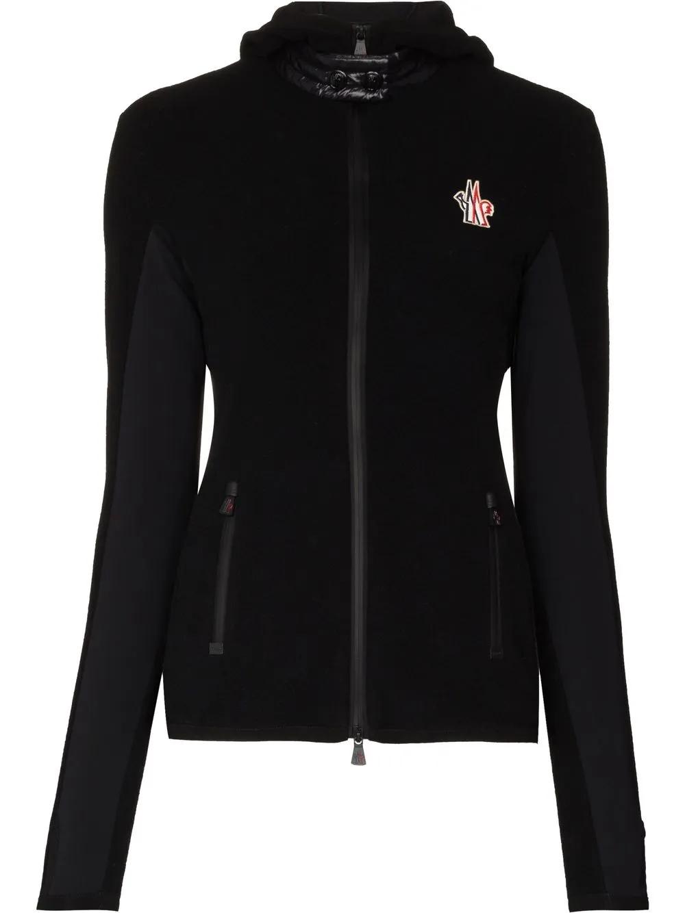 black knitted construction long sleeves straight hem front zip fastening logo patch at the chest