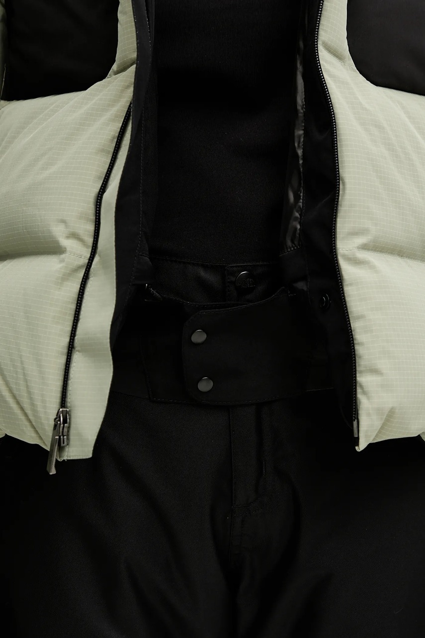 - Produkt wykonany w całości z materiałów pochodzących z recyklingu. - Wypełnienie z naturalnego puchu pochodzącego z recyklingu. - Membrana DryVent™ zapewnia wysoką oddychalność, nieprzemakalność i odporność na wiatr. Dodatkowo technologia pomaga odprowadzić wilgoć na zewnątrz, co pozwala na zachowanie komfortu. - Hydrofobowe wykończenie materiału, które nie zawiera perfluorowych substancji chemicznych (PFC), jest nietoksyczne, ekologiczne i zapewnia wodoodporność. - Wodoodporność oznacza podwyższoną odporność na działanie wody. Produkt w kontakcie z wodą zachowuje swoje właściwości, co pozwala na większy komfort użytkowania dzięki niższemu progowi przemakalności, nie gwarantuje jednak całkowitej wodoszczelności. - Pod pachami otwory wentylacyjne zapinane na suwak, zapewniające optymalną cyrkulację powietrza i komfort termiczny. - U dołu rękawów otwory na kciuk, które osłaniają dłonie i zapobiegają podwijaniu się rękawów. - Podwyższony kołnierz wyściełany miękkim materiałem, dla najwyższego komfortu noszenia. - Kaptur z daszkiem regulowany troczkiem zwiększa ochronę przed zimnem, wiatrem i śniegiem, a odpowiednia konstrukcja pozwala z łatwością nosić go wraz z kaskiem. - Model wykonany ze wzmacnianej tkaniny ripstop, odpornej na uszkodzenia mechaniczne. - Wewnątrz dopinany pas śniegowy, który zapewnia dodatkową ochronę przed zimnem, a także zapobiega przedostaniu się śniegu pod kurtkę, również podczas upadku. - Dwie wsuwane i zapinane na suwak kieszenie boczne. - Na rękawie funkcjonalna, zapinana na suwak kieszonka na ski-pass. - Długość rękawa: 73 cm. - Długość: 60 cm. - Szerokość pod pachami: 54 cm. - Szerokość w ramionach: 38 cm. - Wymiary podane dla rozmiaru: M.