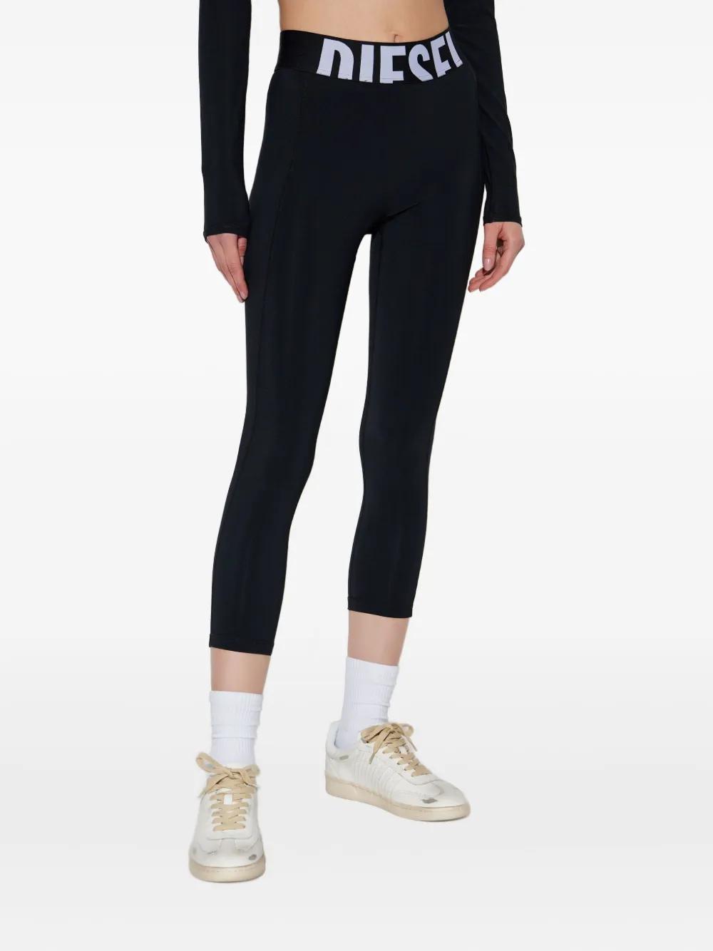 bubblegum pink recycled polyamide blend stretch-design elasticated waistband high waist logo print to the front cropped leg
