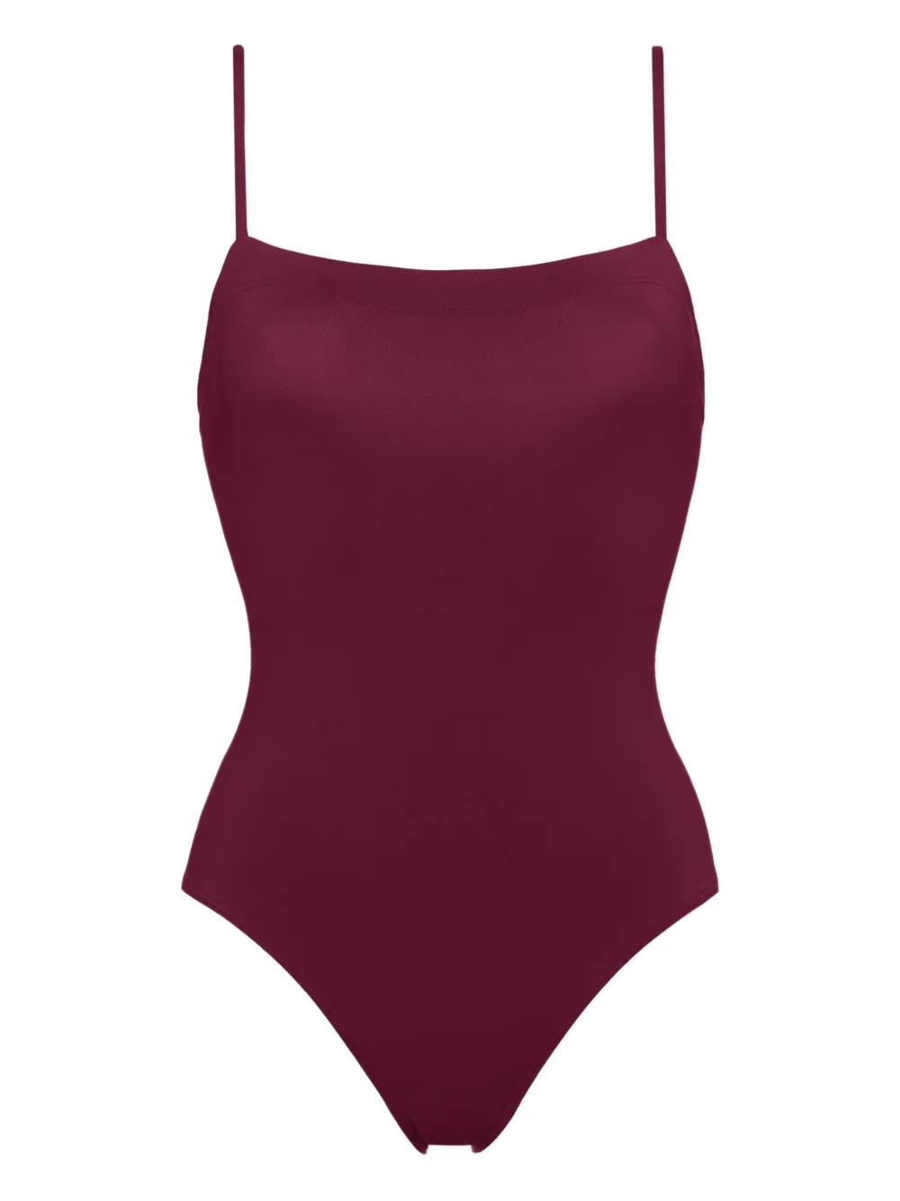 purple square neckline thin straps seamless construction Be mindful to try on swimwear over your own garments.