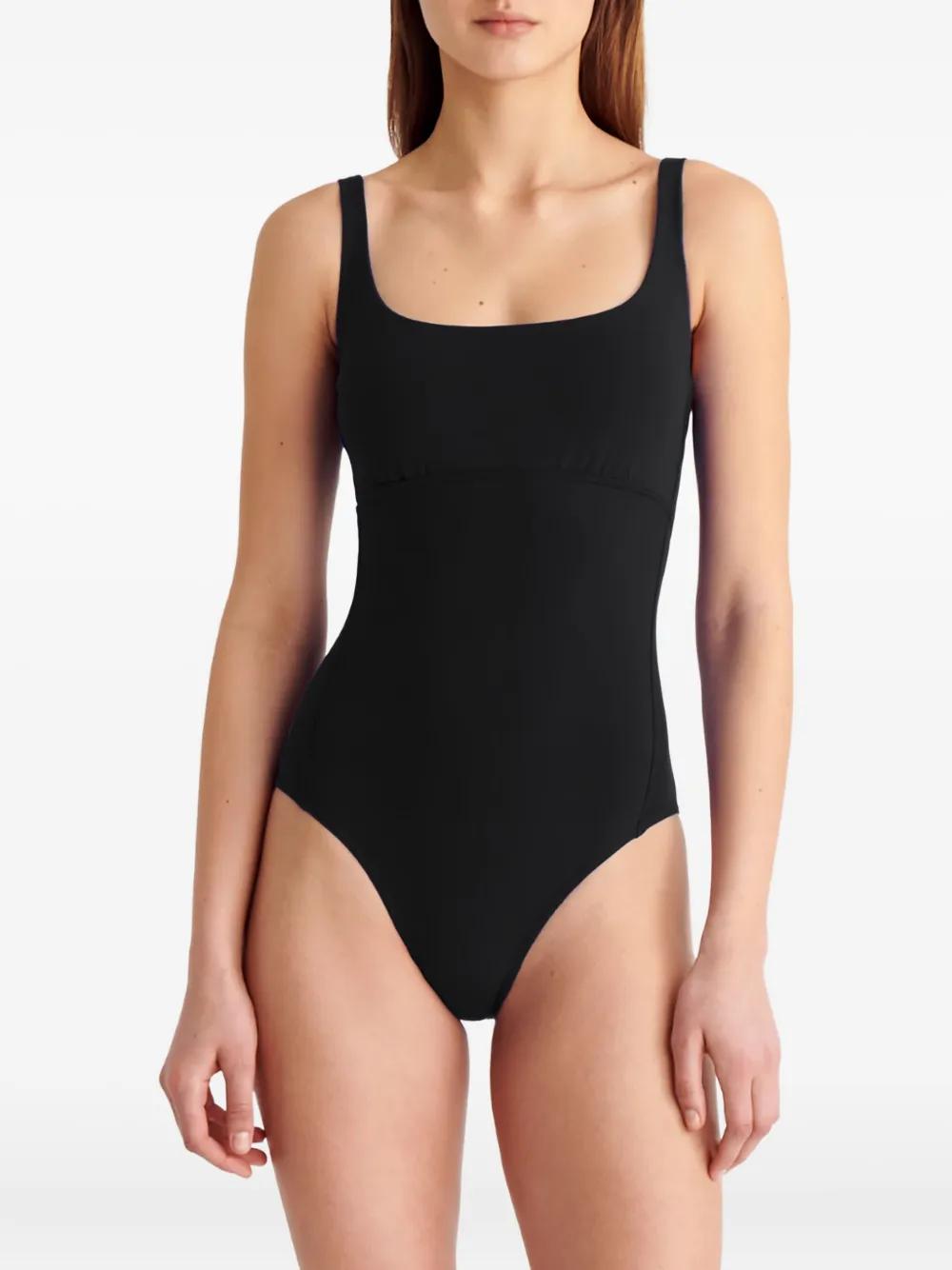 black square neck wide straps full coverage seamless construction elasticated under bust Be mindful to try on swimwear over your own garments.
