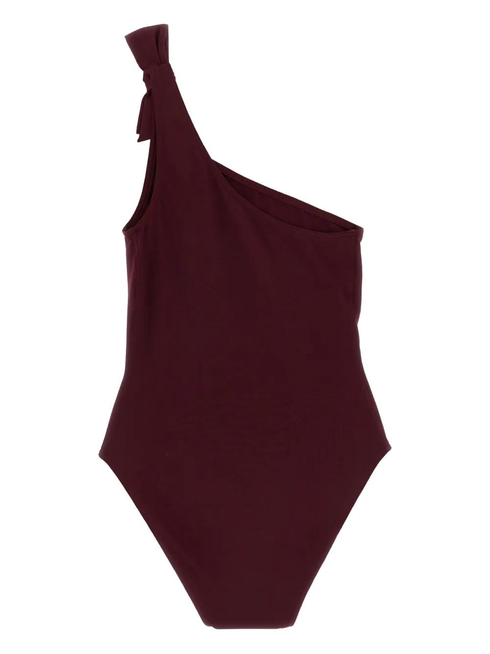 bordeaux bow detail one-shoulder design classic leg sliding detail adjustable detail