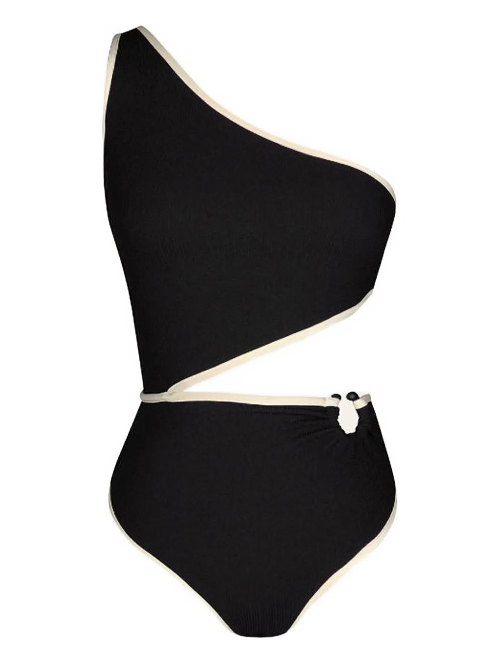 black cut-out detail one-shoulder design ring detail contrasting trim Be mindful to try on swimwear over your own garments.