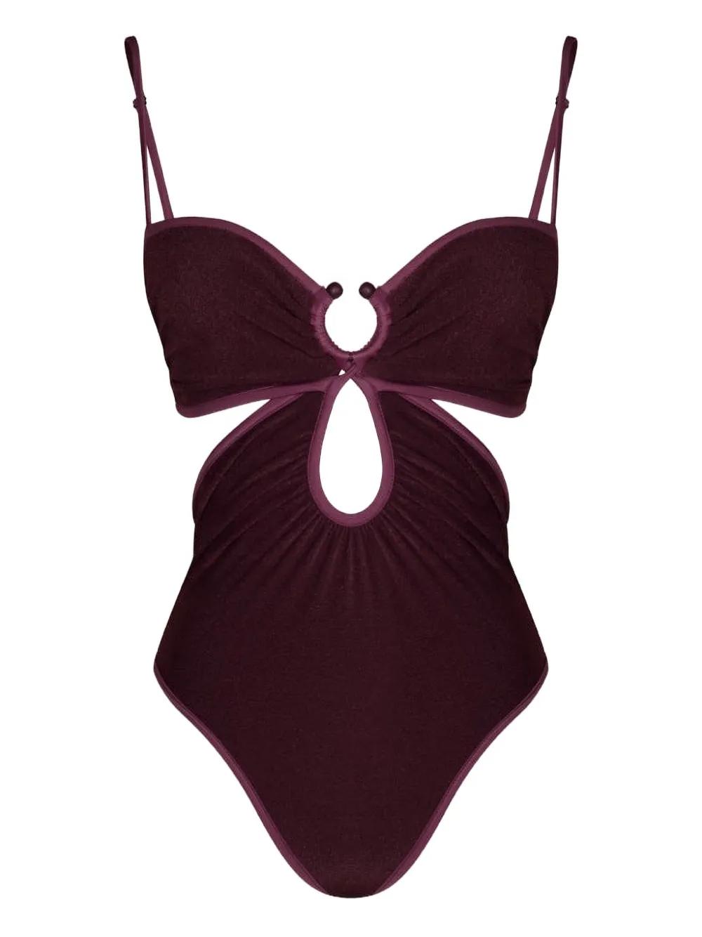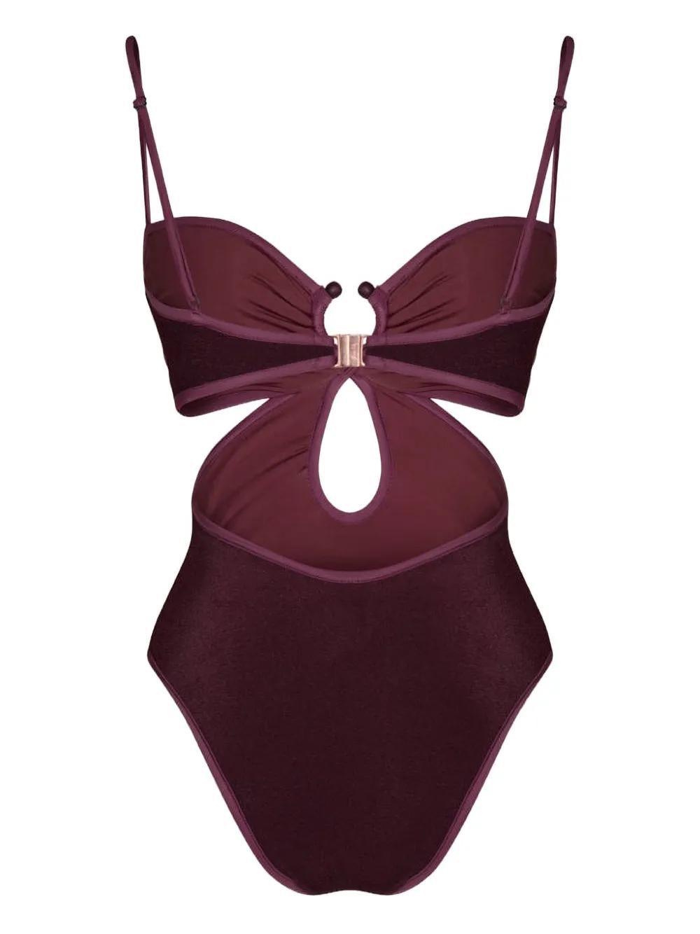 dark red front ring detail cut-out details adjustable spaghetti straps Be mindful to try on swimwear over your own garments.