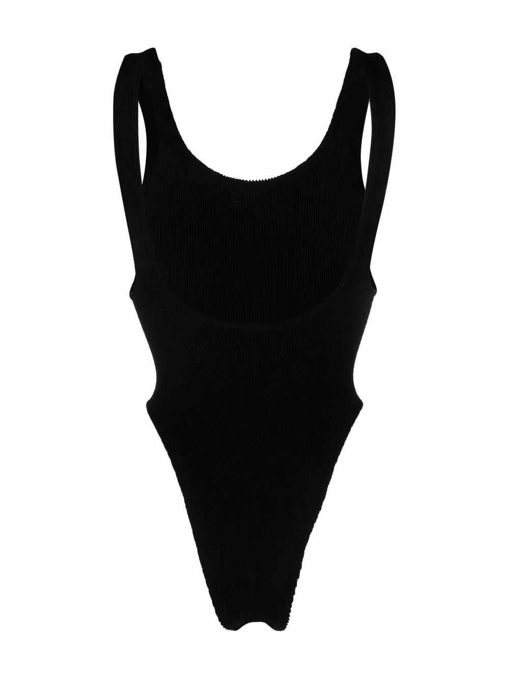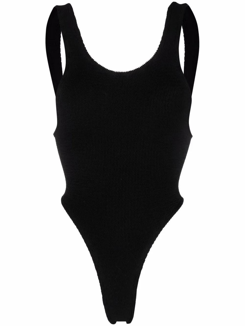 black stretch-design crinkled finish open back round neck sleeveless Be mindful to try on swimwear over your own garments.