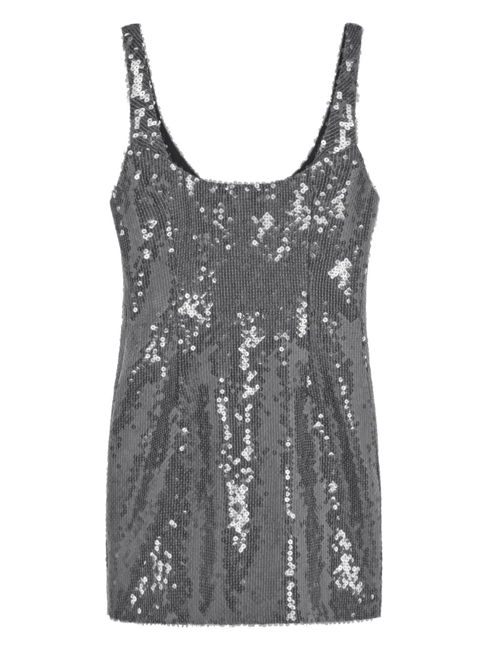 anthracite grey sleeveless sequin embellishment thin straps V-neck