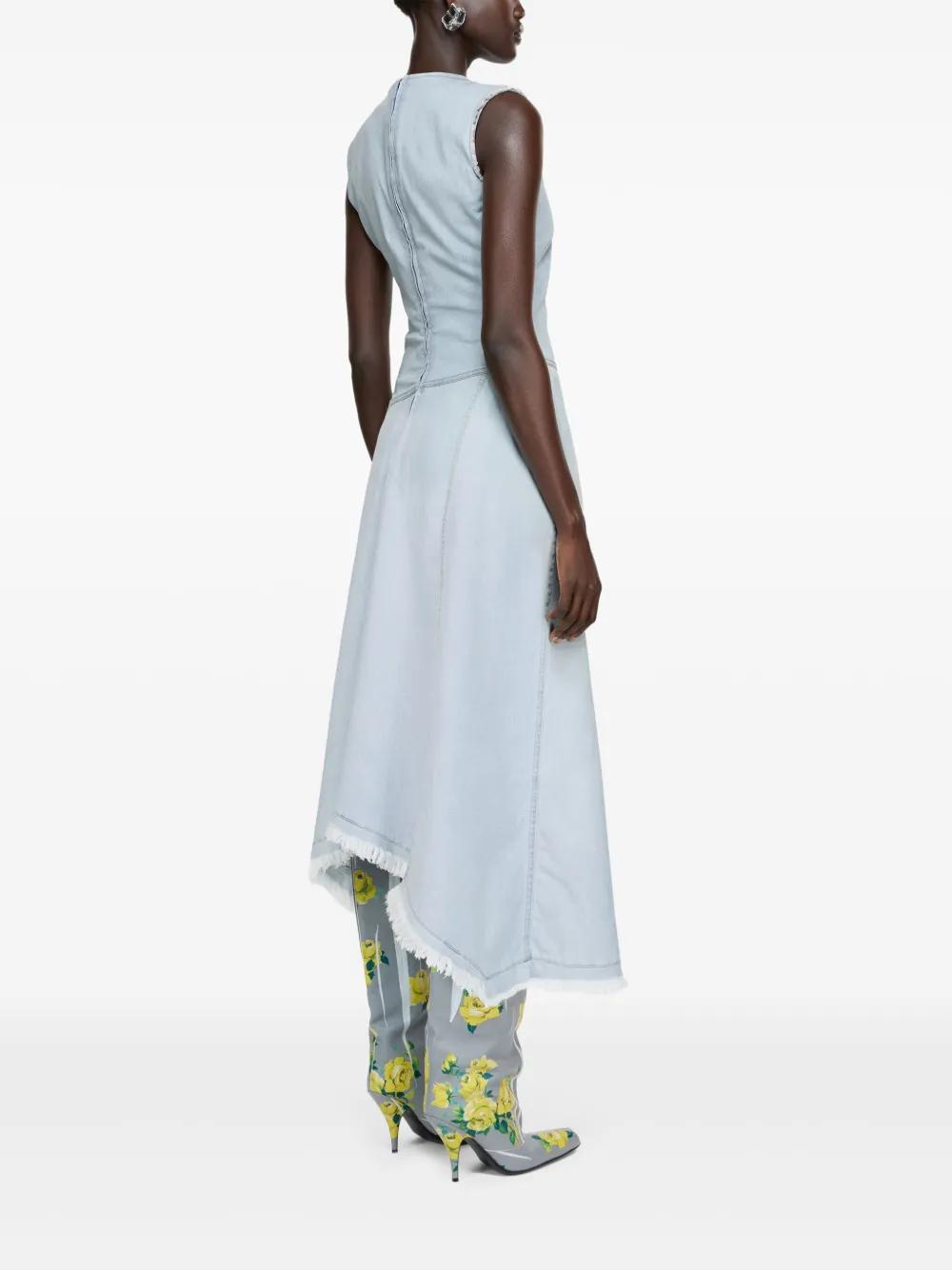 light blue rear zip fastening round neck sleeveless asymmetric hem