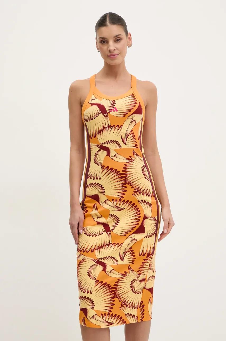 adidas sukienka x Farm Rio kolor pomarańczowy midi dopasowana JD6315