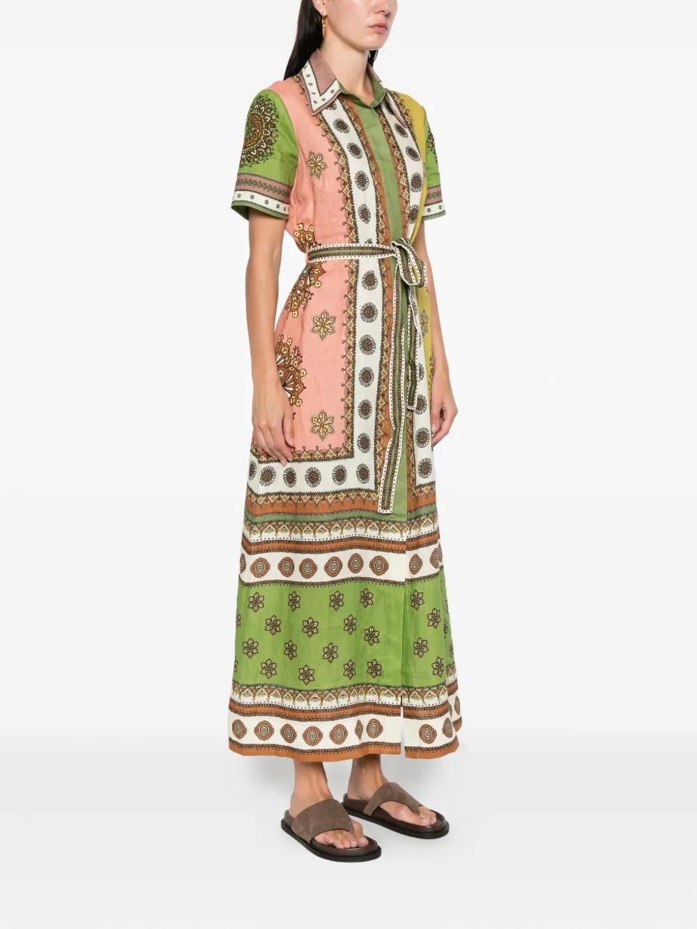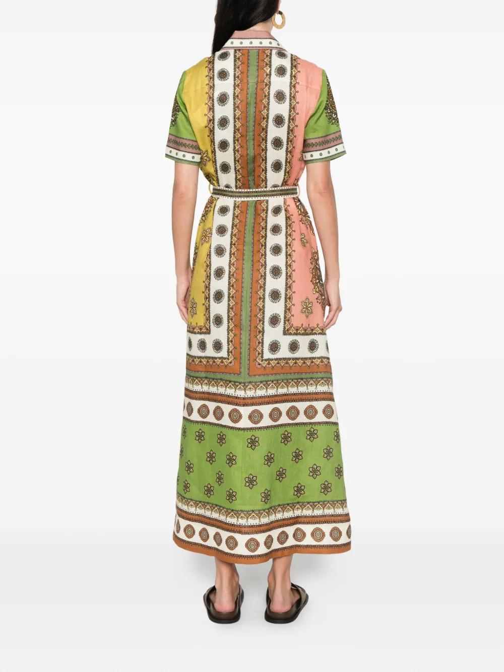 green and multicolour point collar short sleeves front button fastening self-tie included