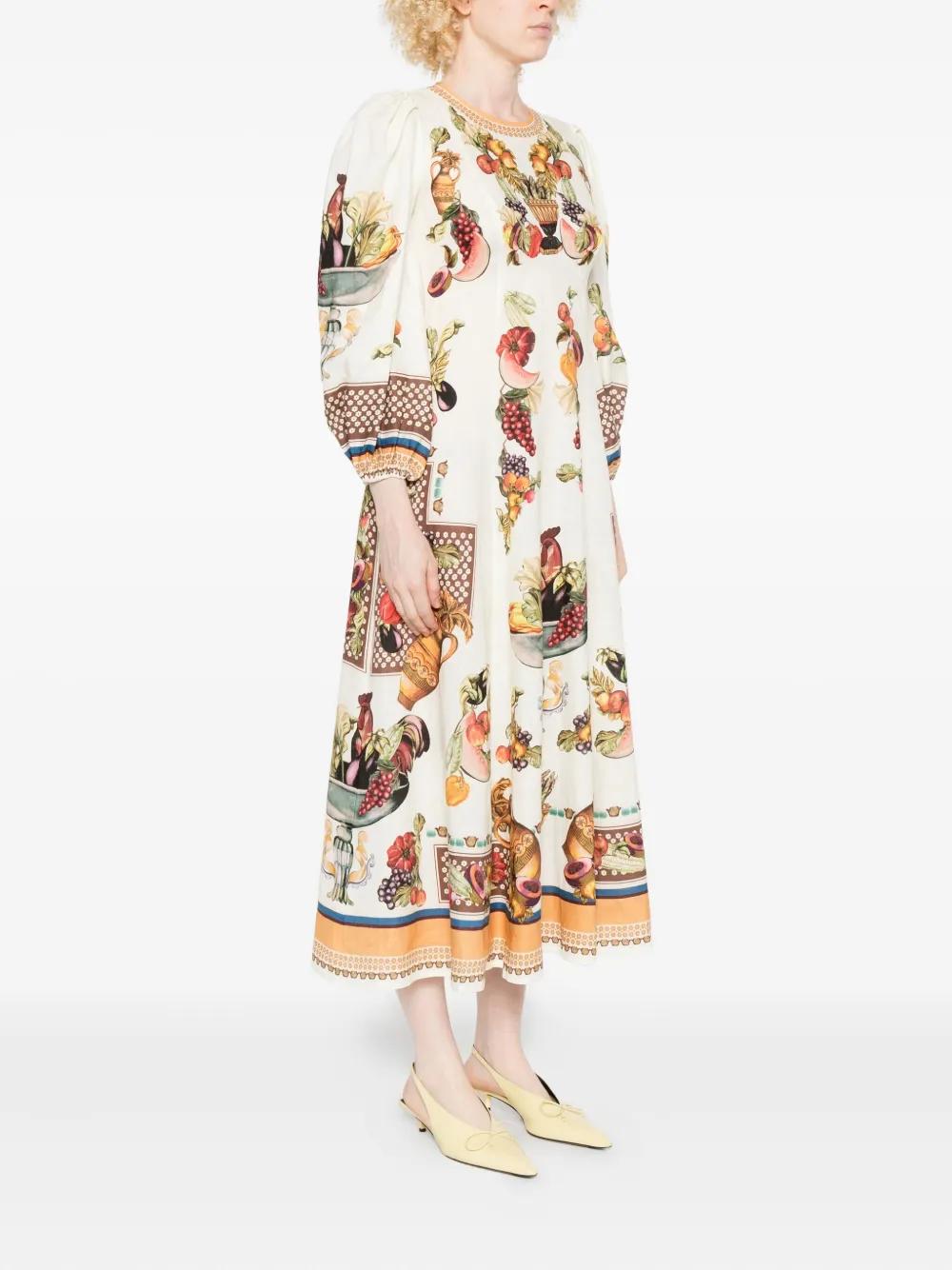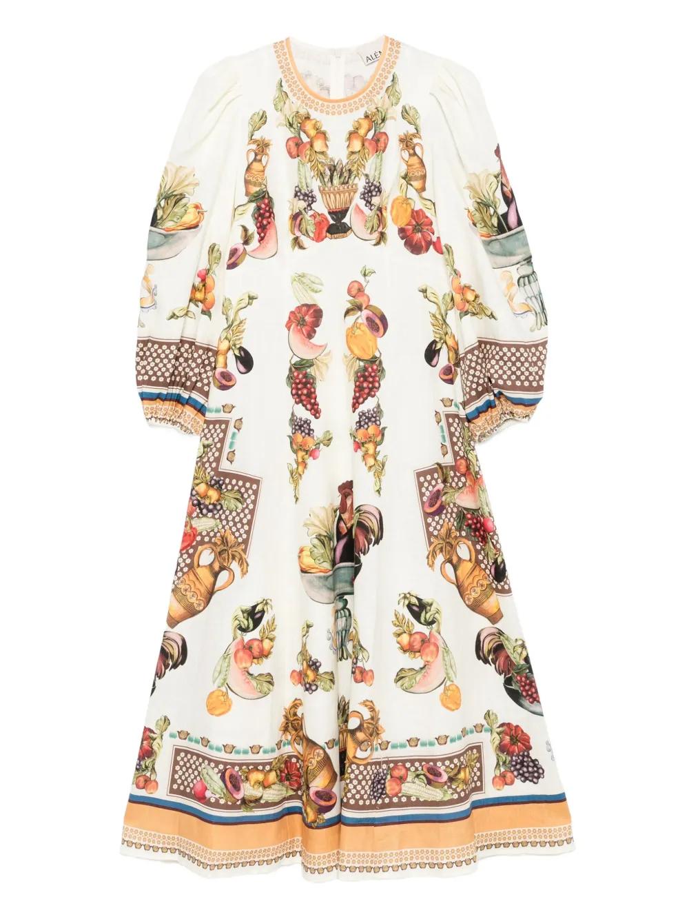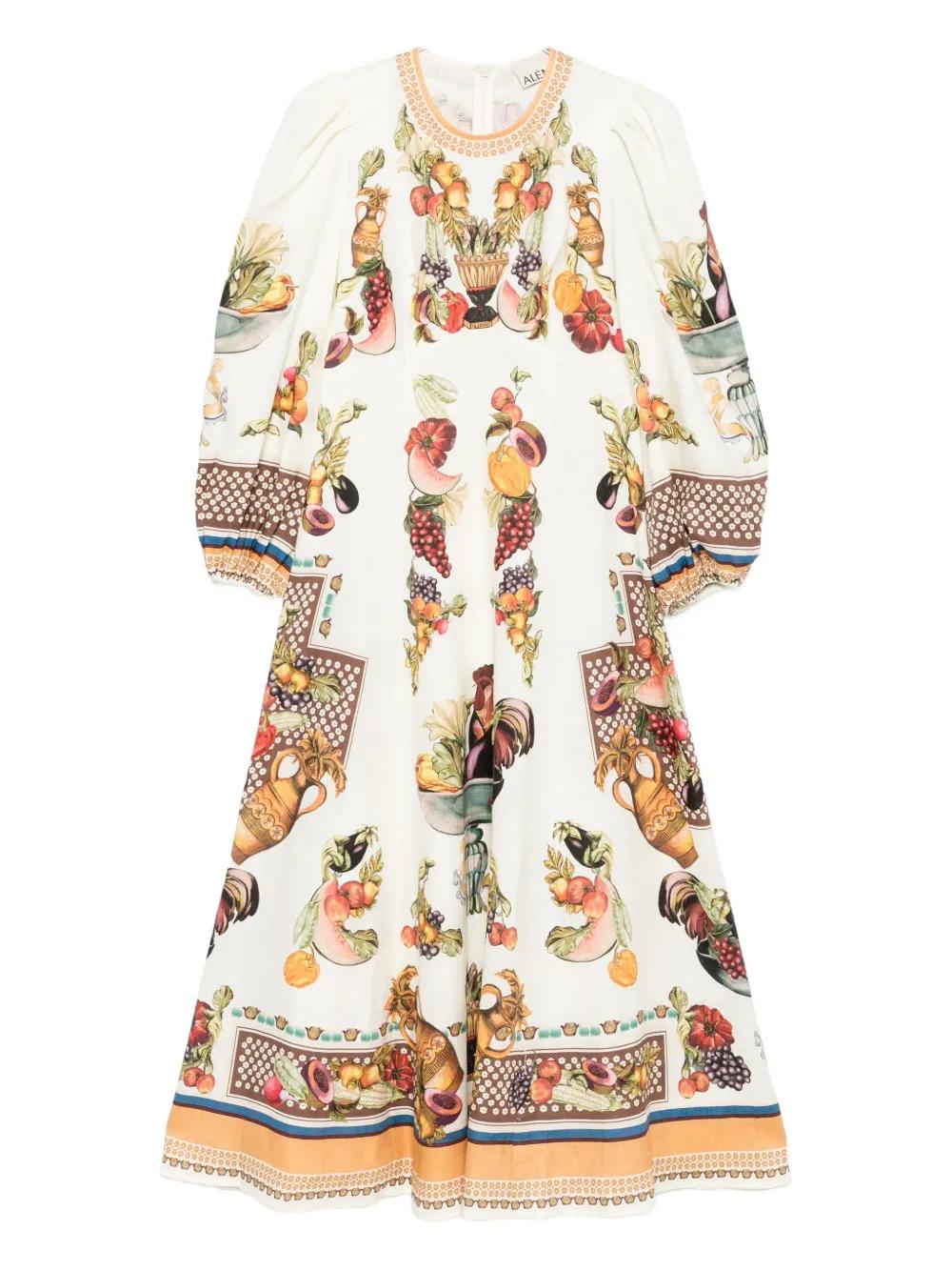 ALEMAIS Mercado fruit-print puff-sleeve midi dress - White