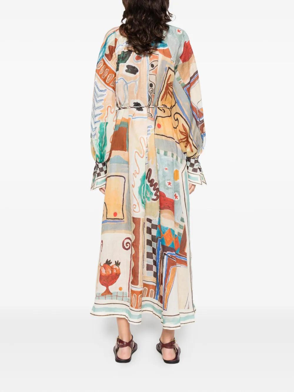 ALEMAIS printed-design midi shirt dress - Blue