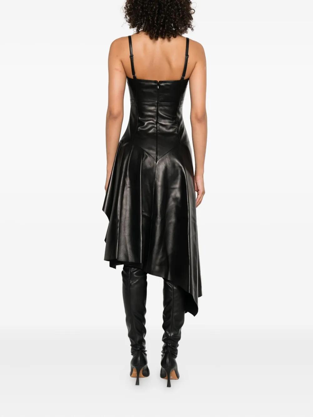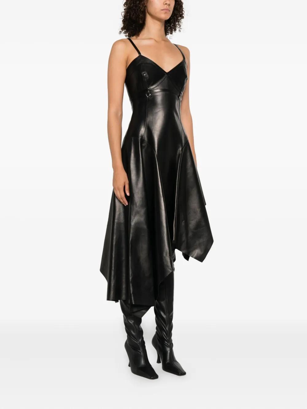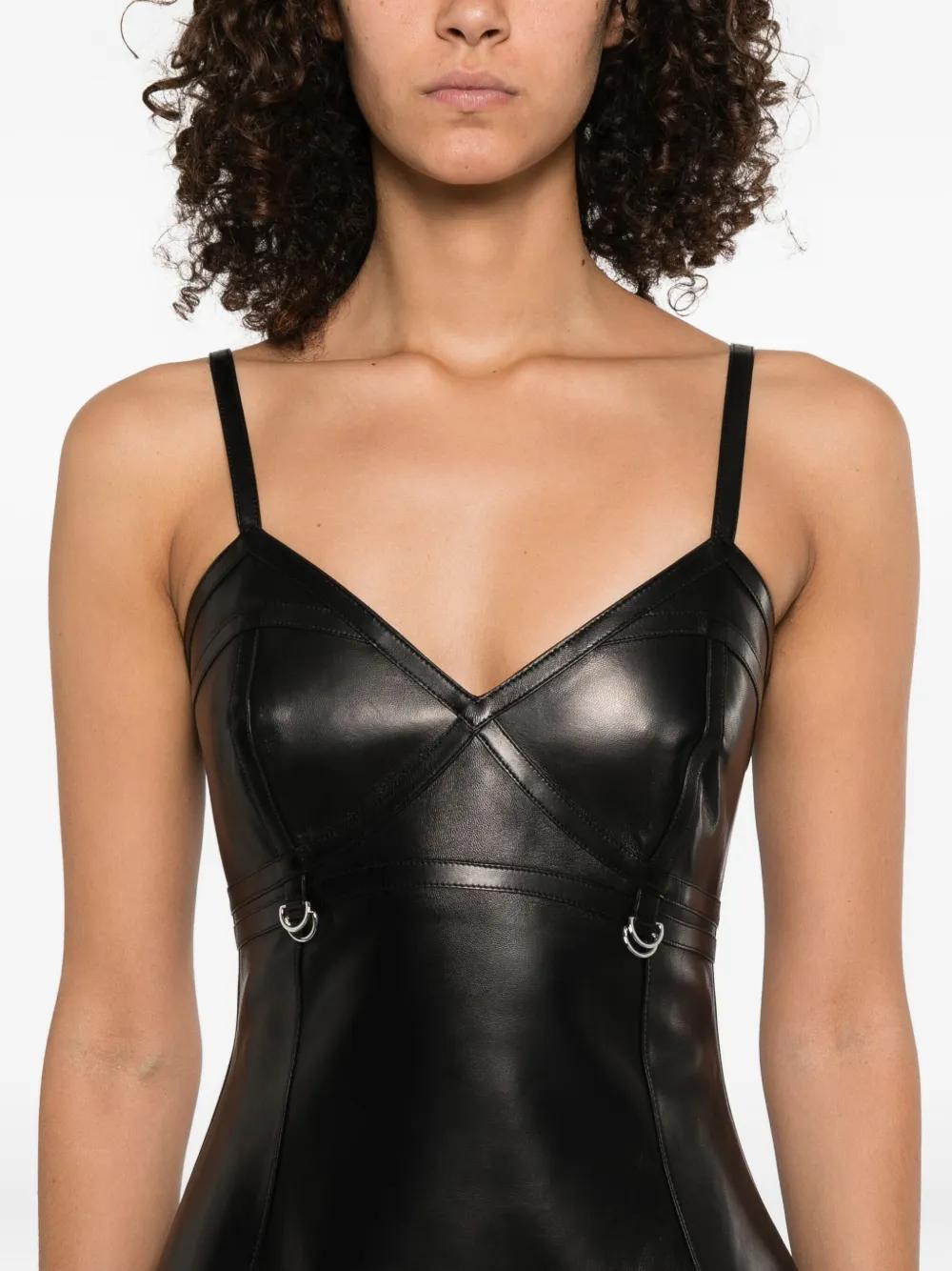 black leather asymmetrical hem spaghetti straps v-neck metal eyelets