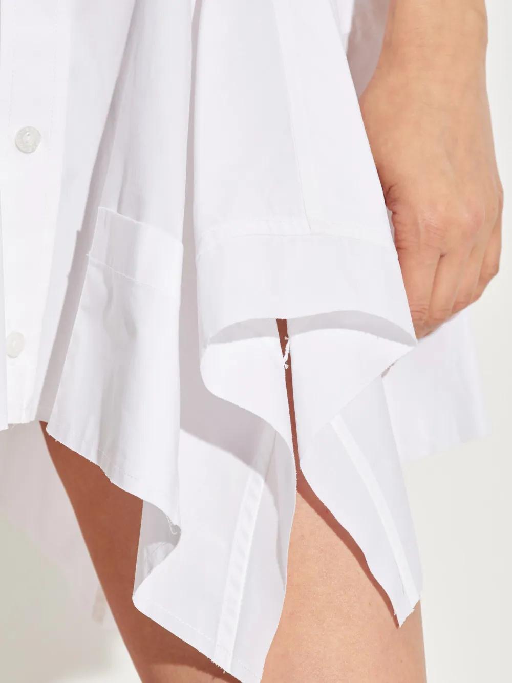 white short sleeves classic collar front button fastening layered skirt asymmetrical hem