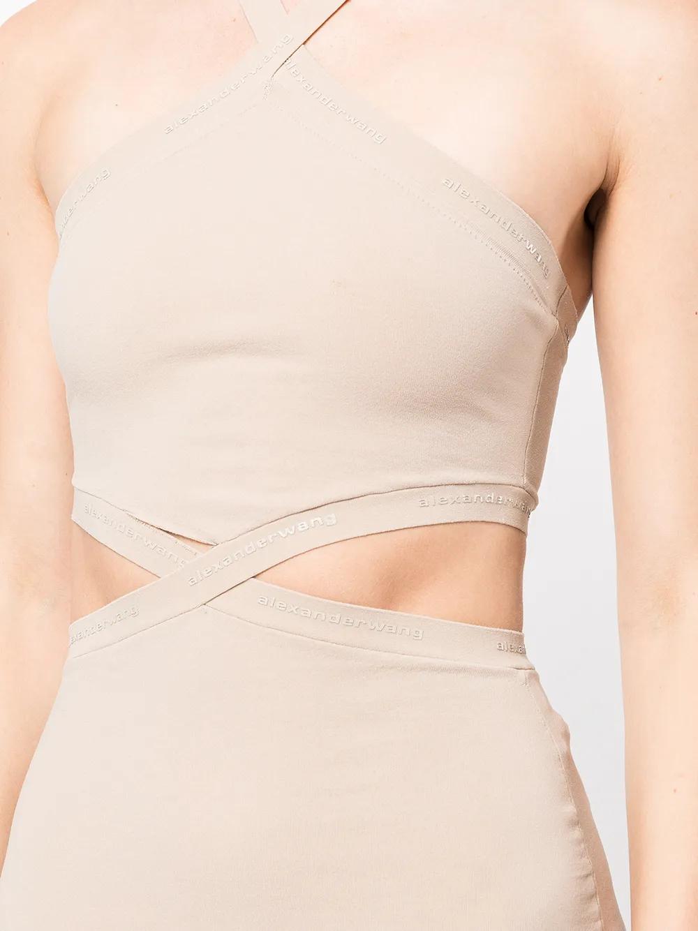 Alexander Wang logo-trim halterneck dress - Neutrals