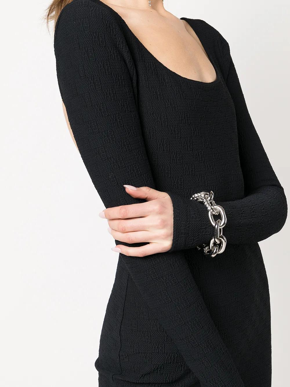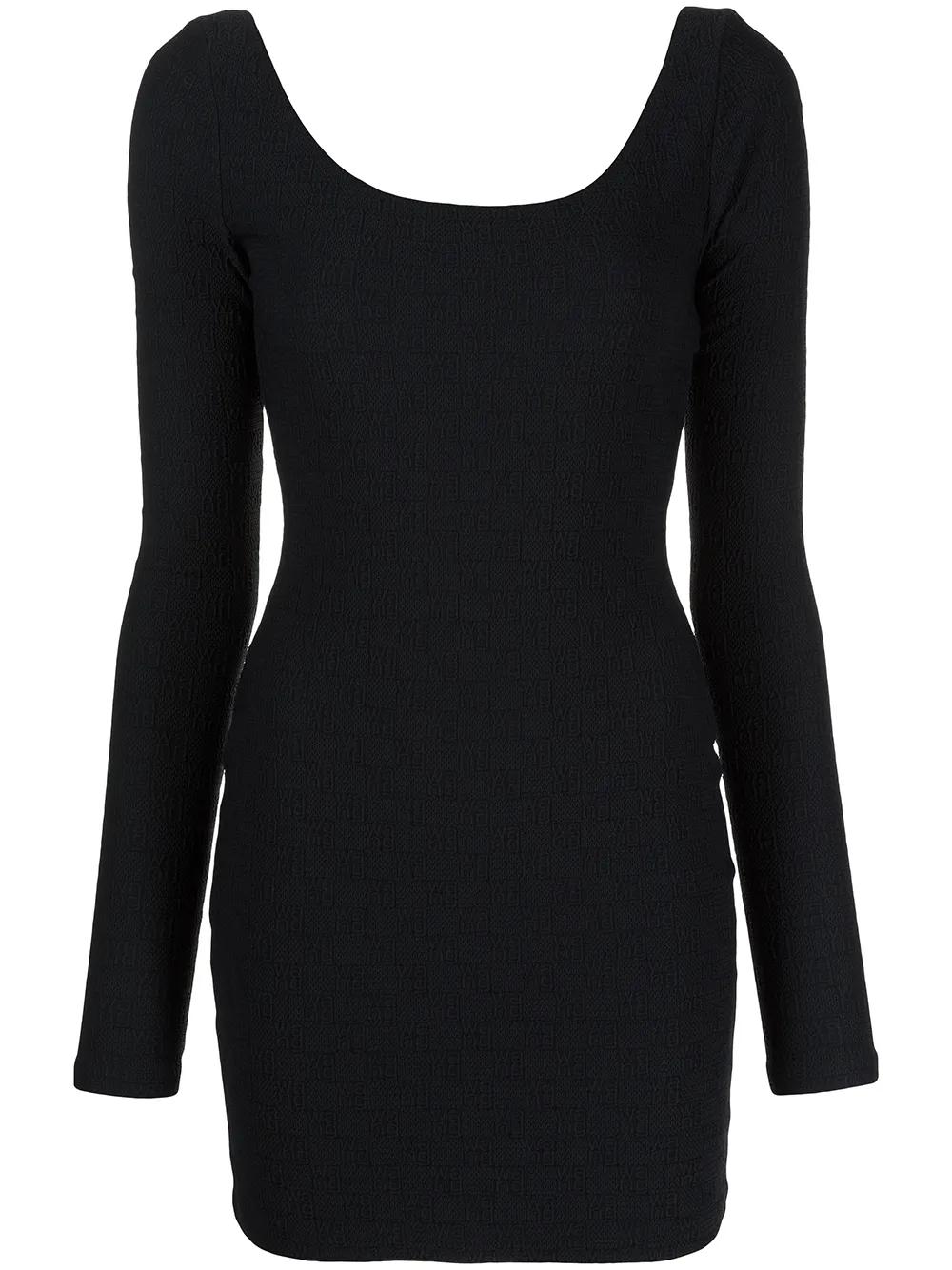black jersey knit scoop neck long sleeves above-knee length stretch-design