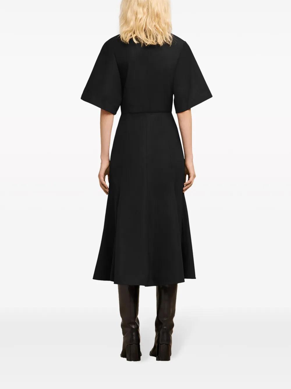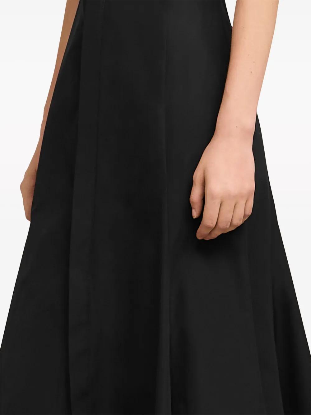 black cotton round neck short sleeves A-line skirt below-knee length straight hem
