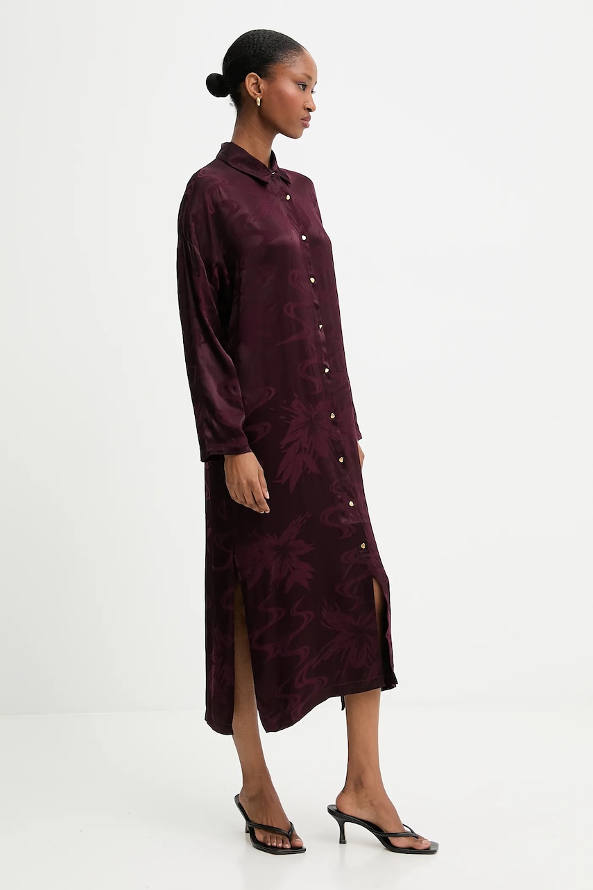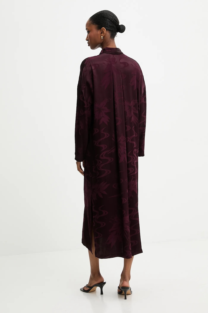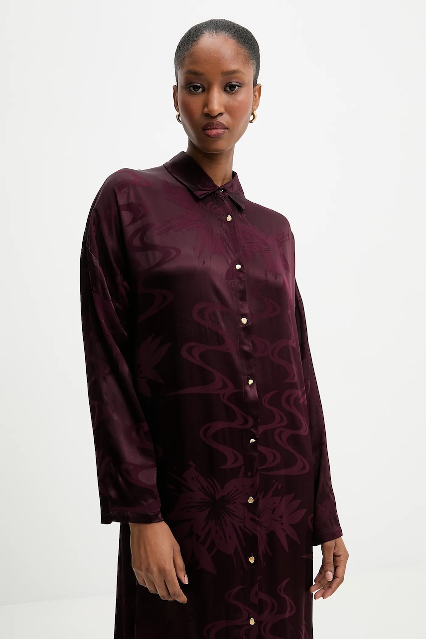 - Luźny krój zapewniający pełną swobodę ruchów. - Krój rękawa z obniżoną linią ramion nie ogranicza mobilności. - Model z miękkim kołnierzykiem. - Wygodne zapięcie na guziki ułatwia zakładanie i zdejmowanie. - Model wykonany z materiału o satynowym splocie. - Model bez podszewki. - Długość rękawa(mierzona od kołnierzyka): 70 cm. - Długość z przodu: 123 cm. - Długość sukienki: 120 cm. - Szerokość pod pachami: 69 cm. - Wymiary podane dla rozmiaru: S.