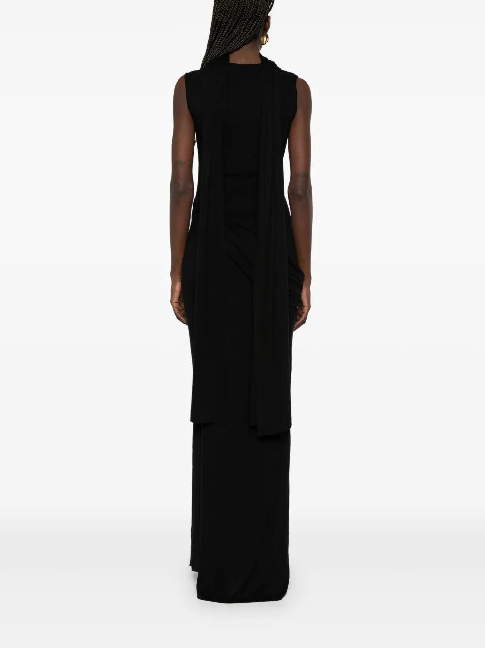black lambskin smooth grain tonal stitching dart detailing at the chest halterneck square neck concealed rear zip fastening adjustable spaghetti straps sleeveless rear slit straight hem