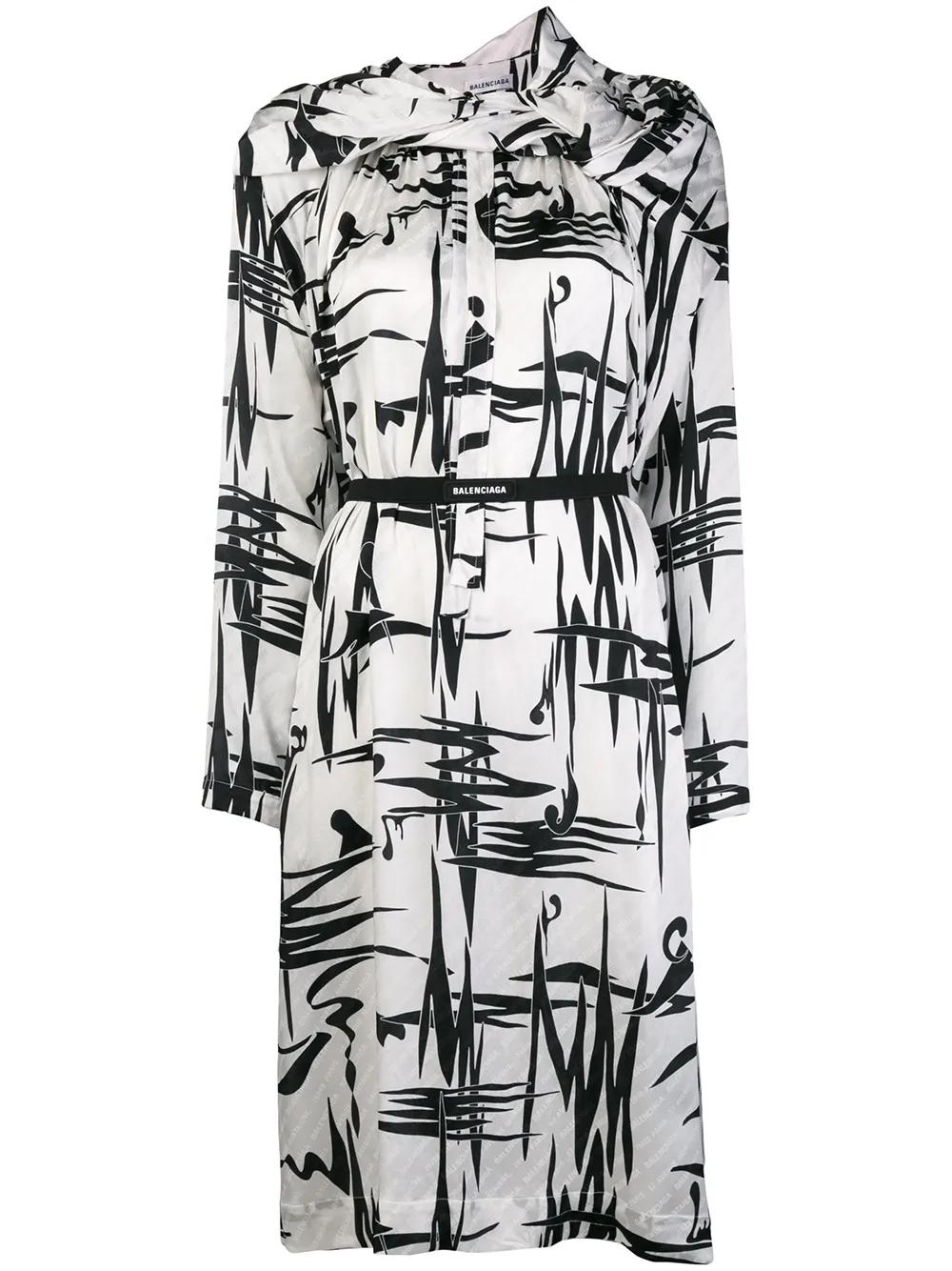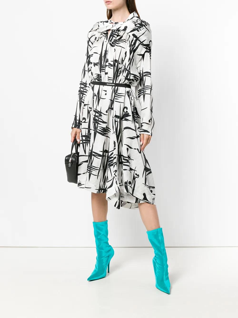 Balenciaga graphic print asymmetric dress - White