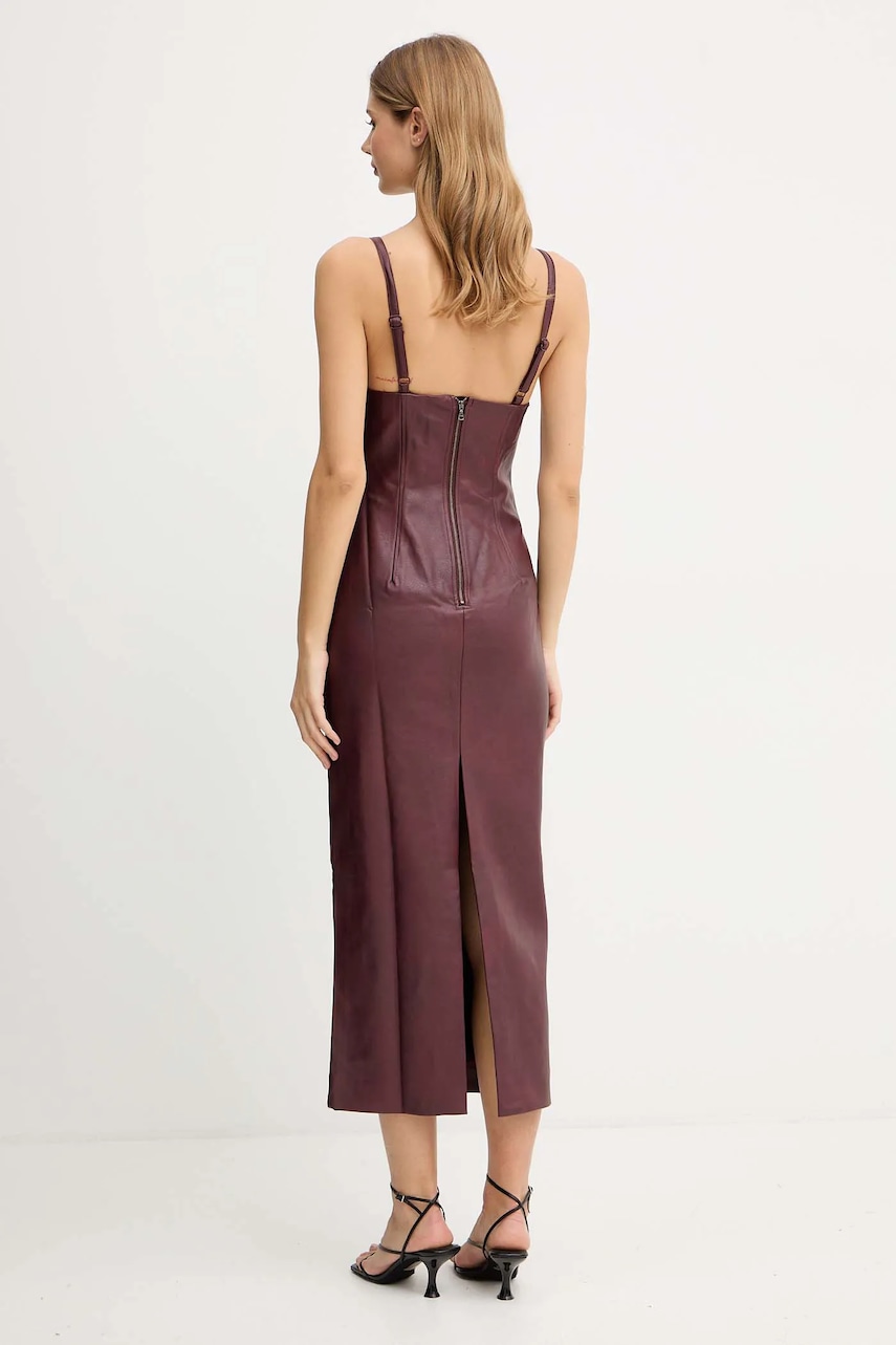 Bardot sukienka kolor bordowy midi dopasowana 60086DB
