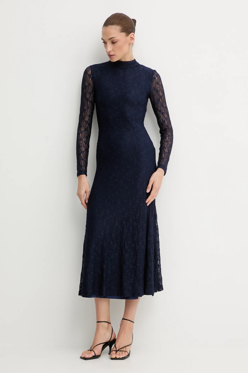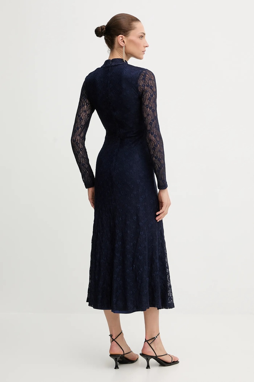Bardot sukienka kolor granatowy midi rozkloszowana 59476DB2