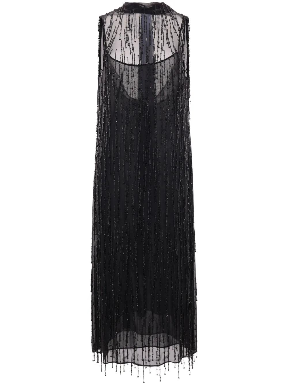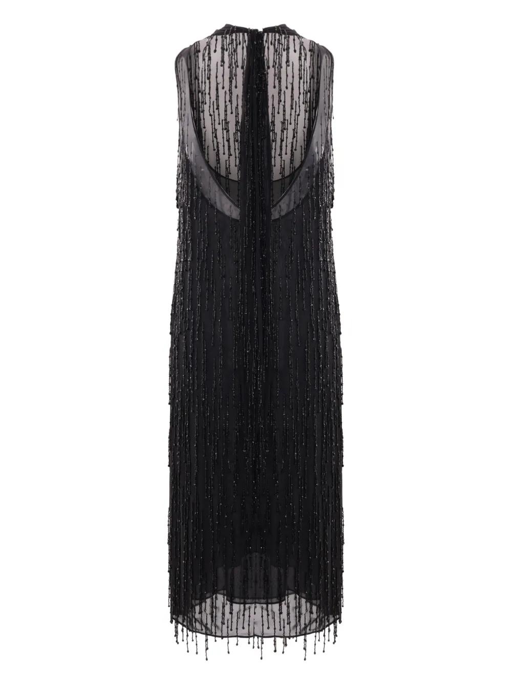 black silk concealed side zip fastening halterneck sleeveless low back straight hem detachable slip dress