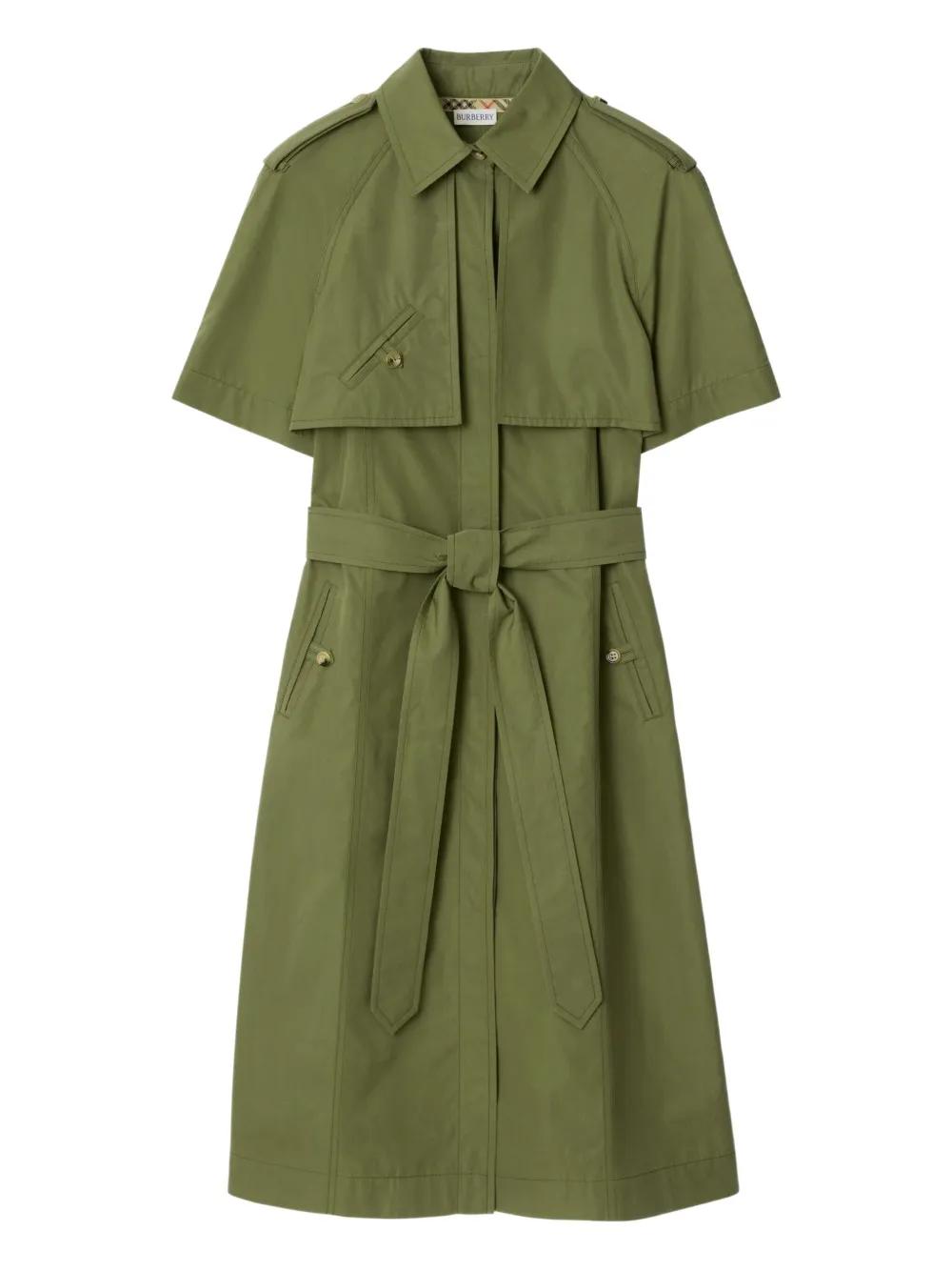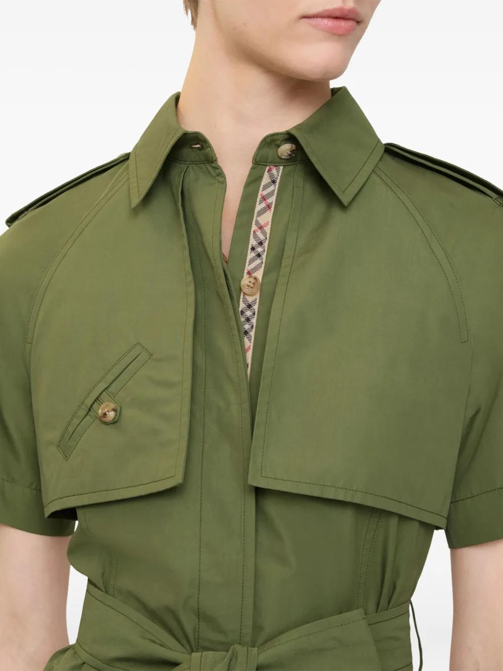 green button fastening self-tie belt epaulettes storm flap buttoned flap pocket