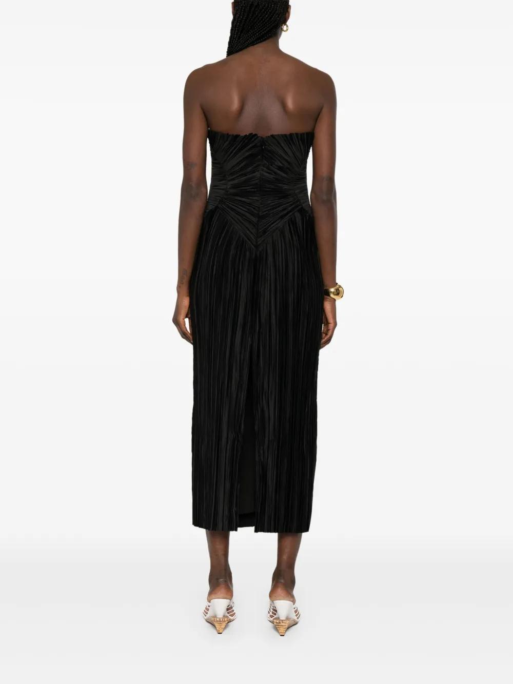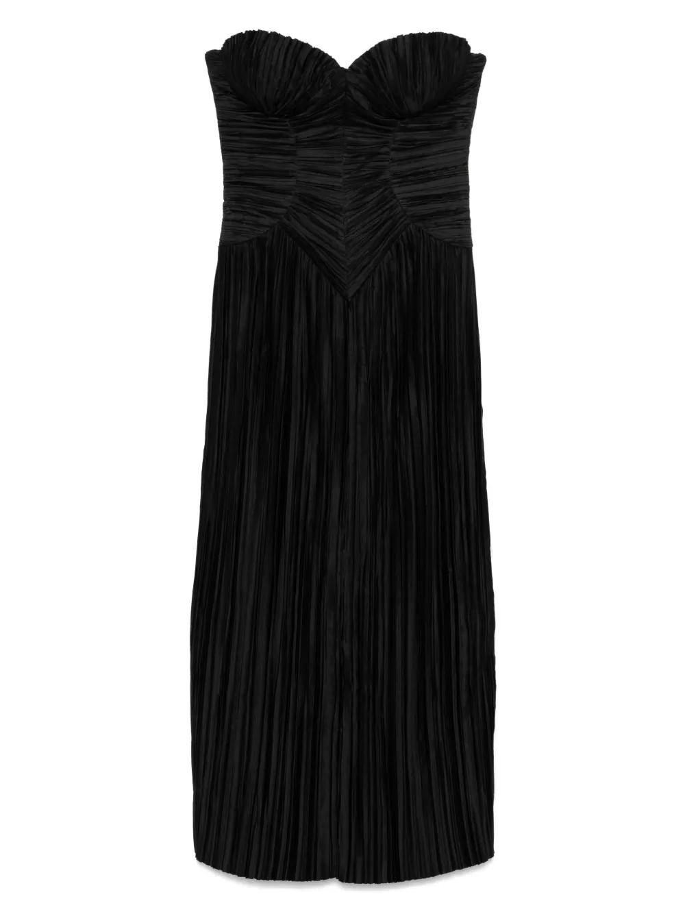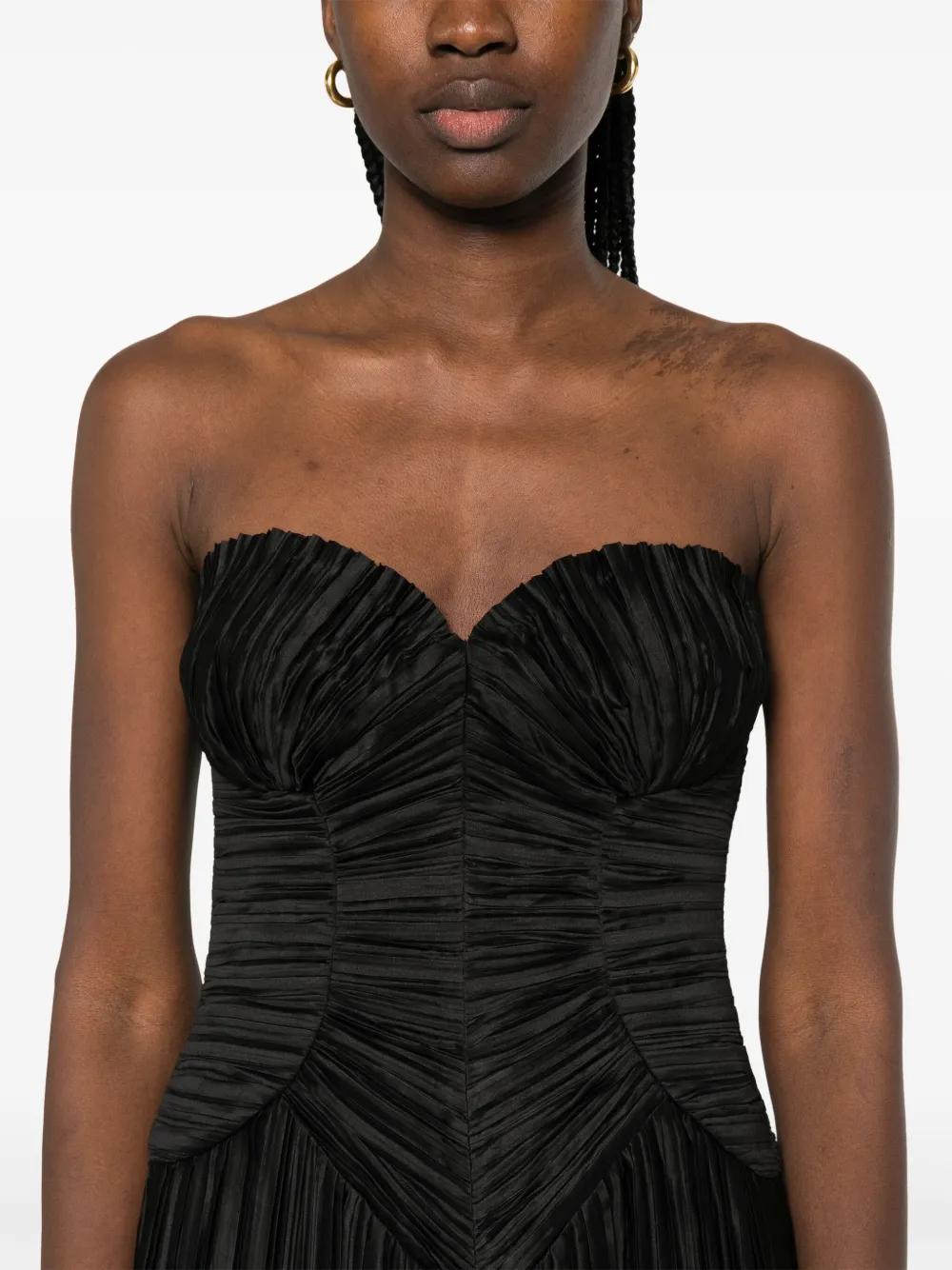 black concealed rear zip fastening sweetheart neck strapless plissé effect