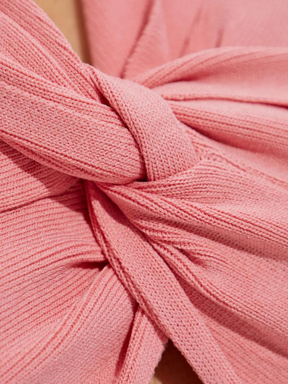 light pink ribbed knit twist-knot neckline detail sleeveless midi length