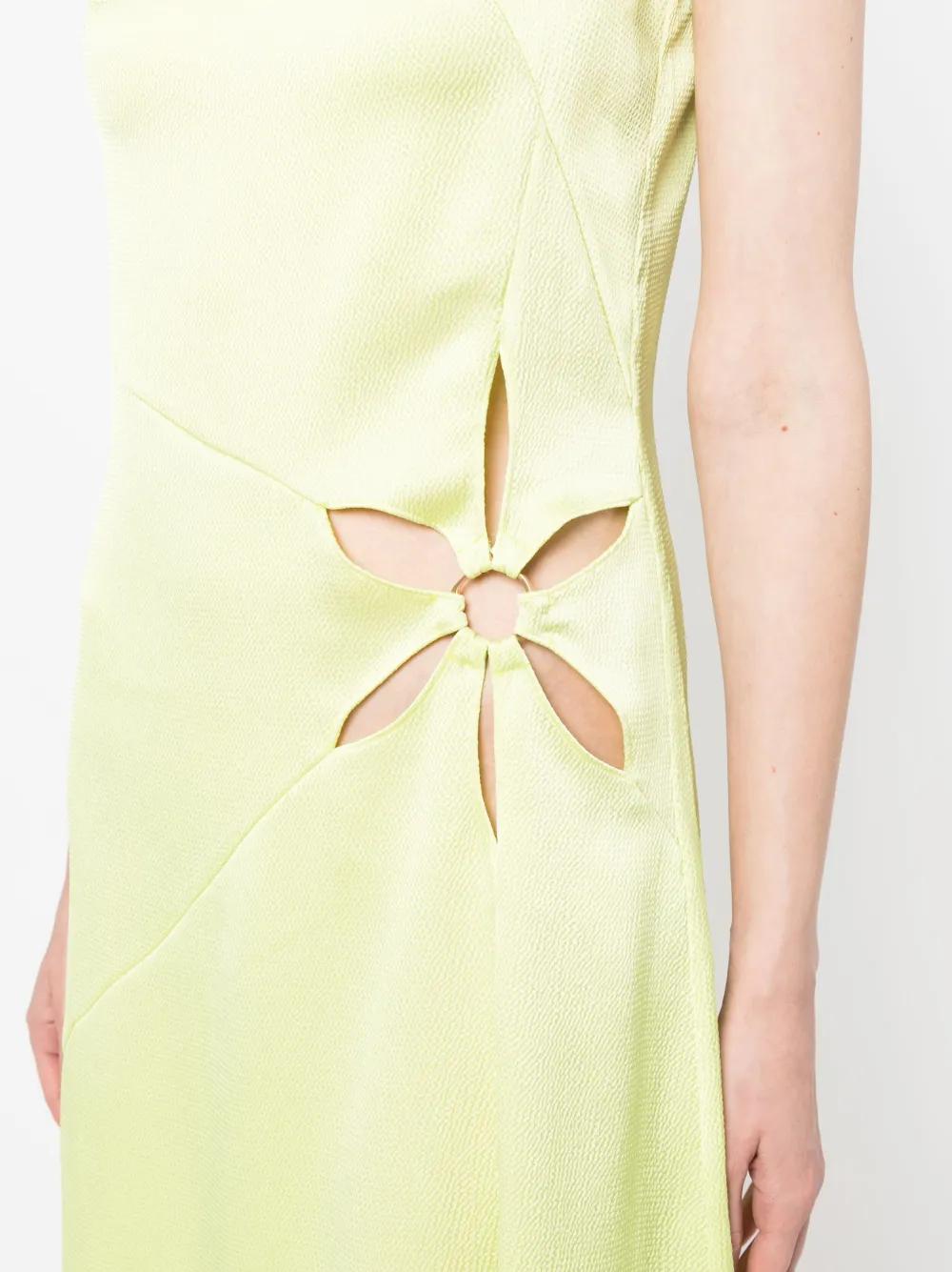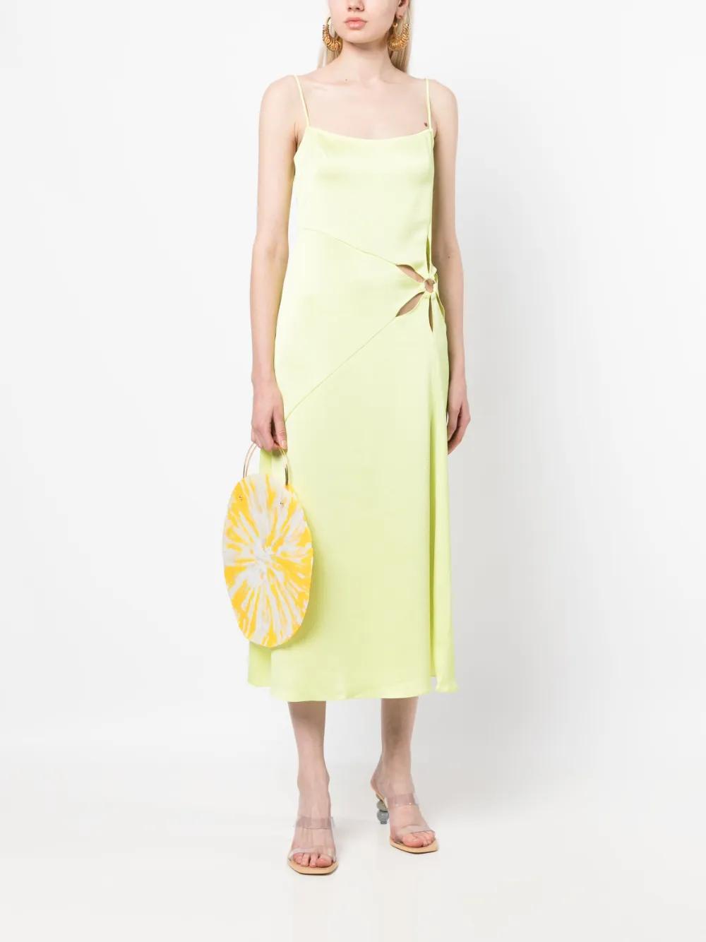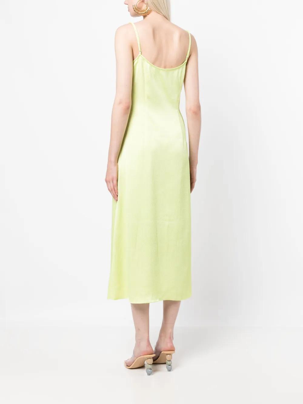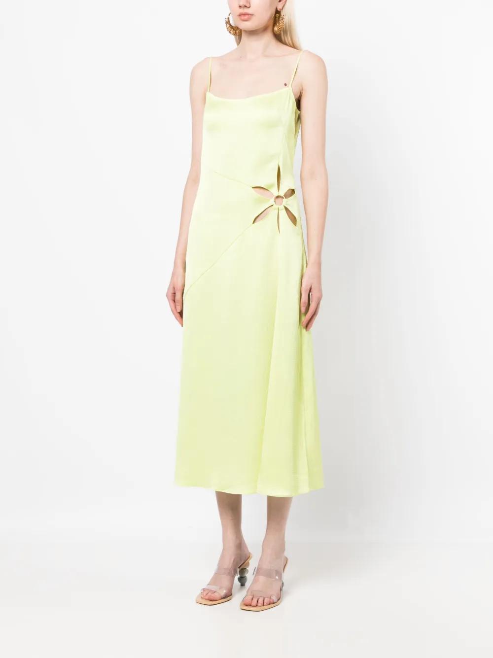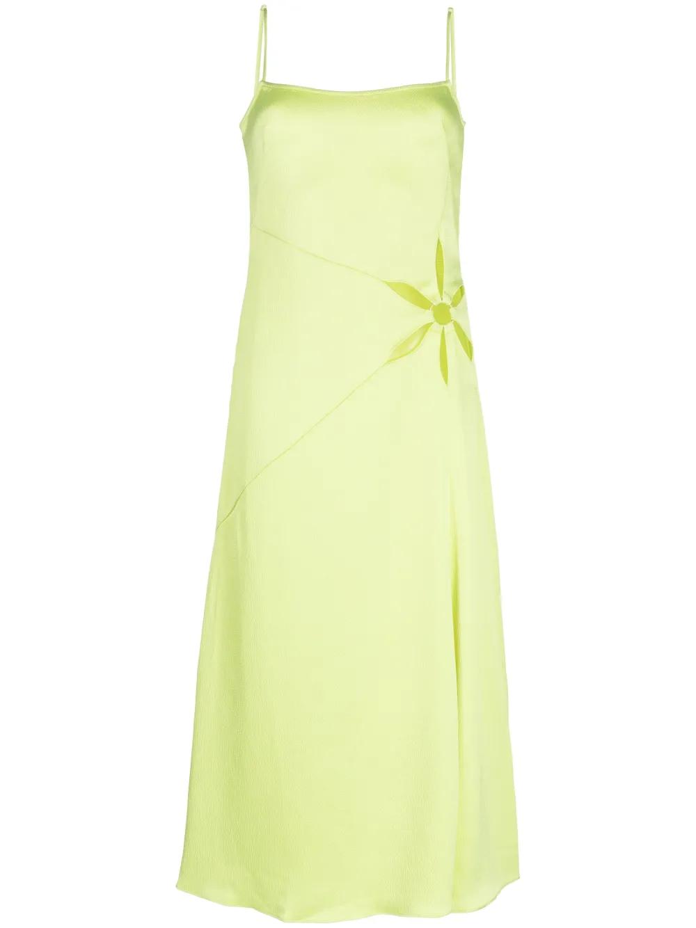 light green cut-out floral detailing seam detailing square neck spaghetti straps sleeveless side zip fastening calf-length