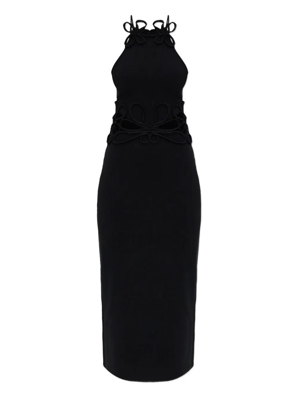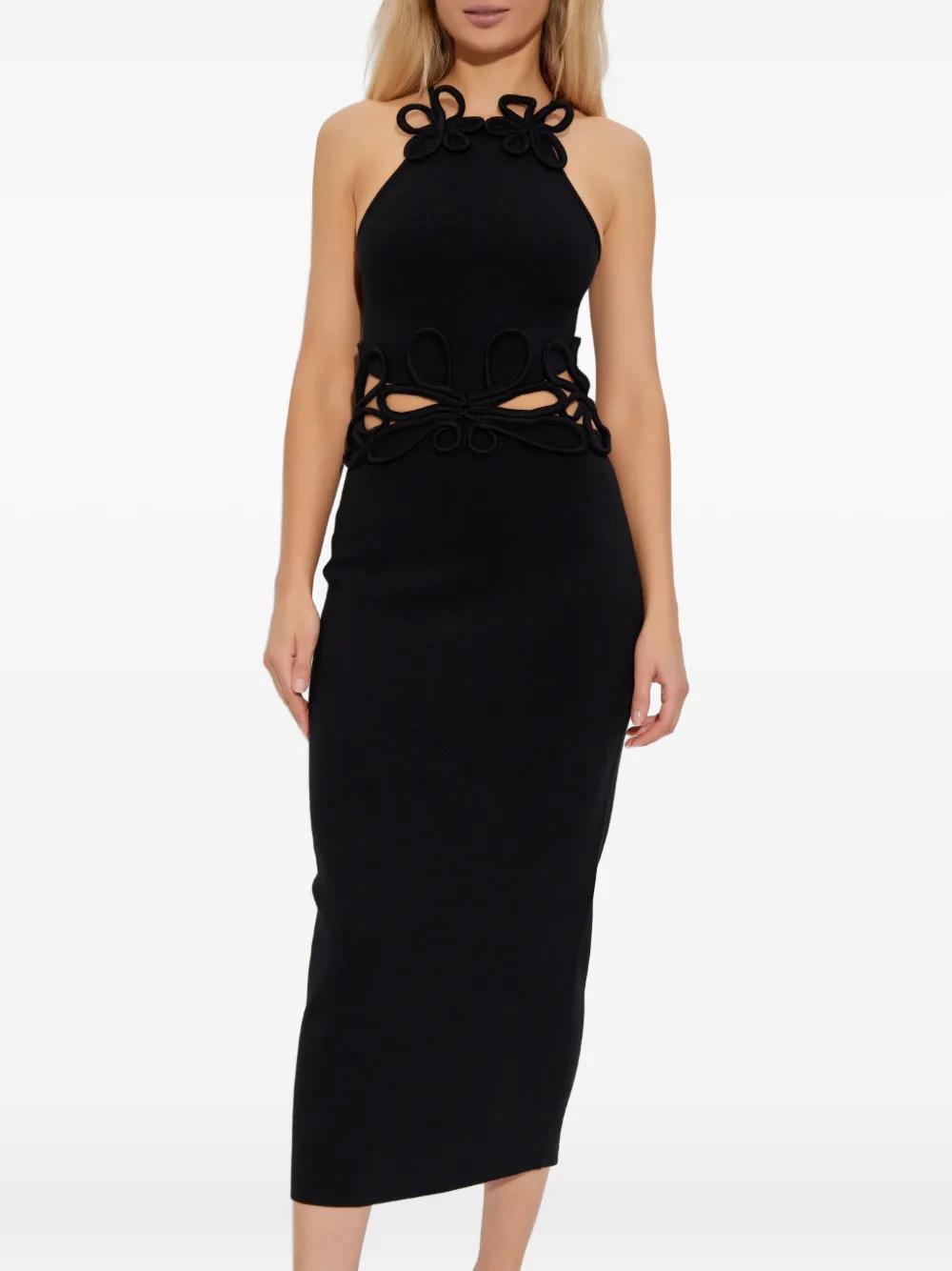 black floral embellishment halterneck cut-out detailing midi length close-fitting