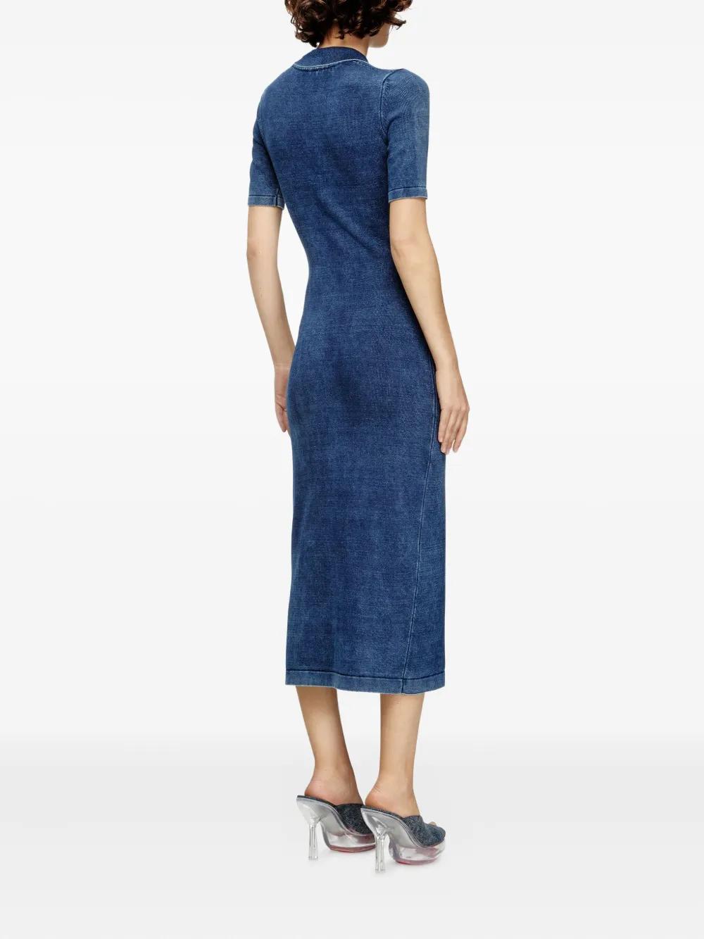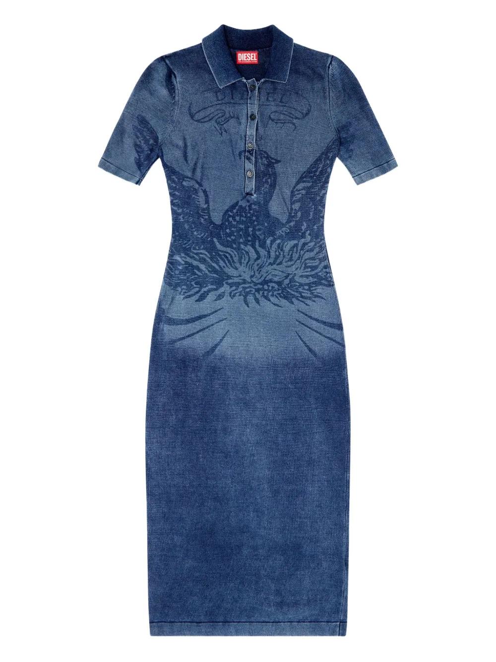 dark blue short sleeves printed design front button placket polo collar fitted bodice