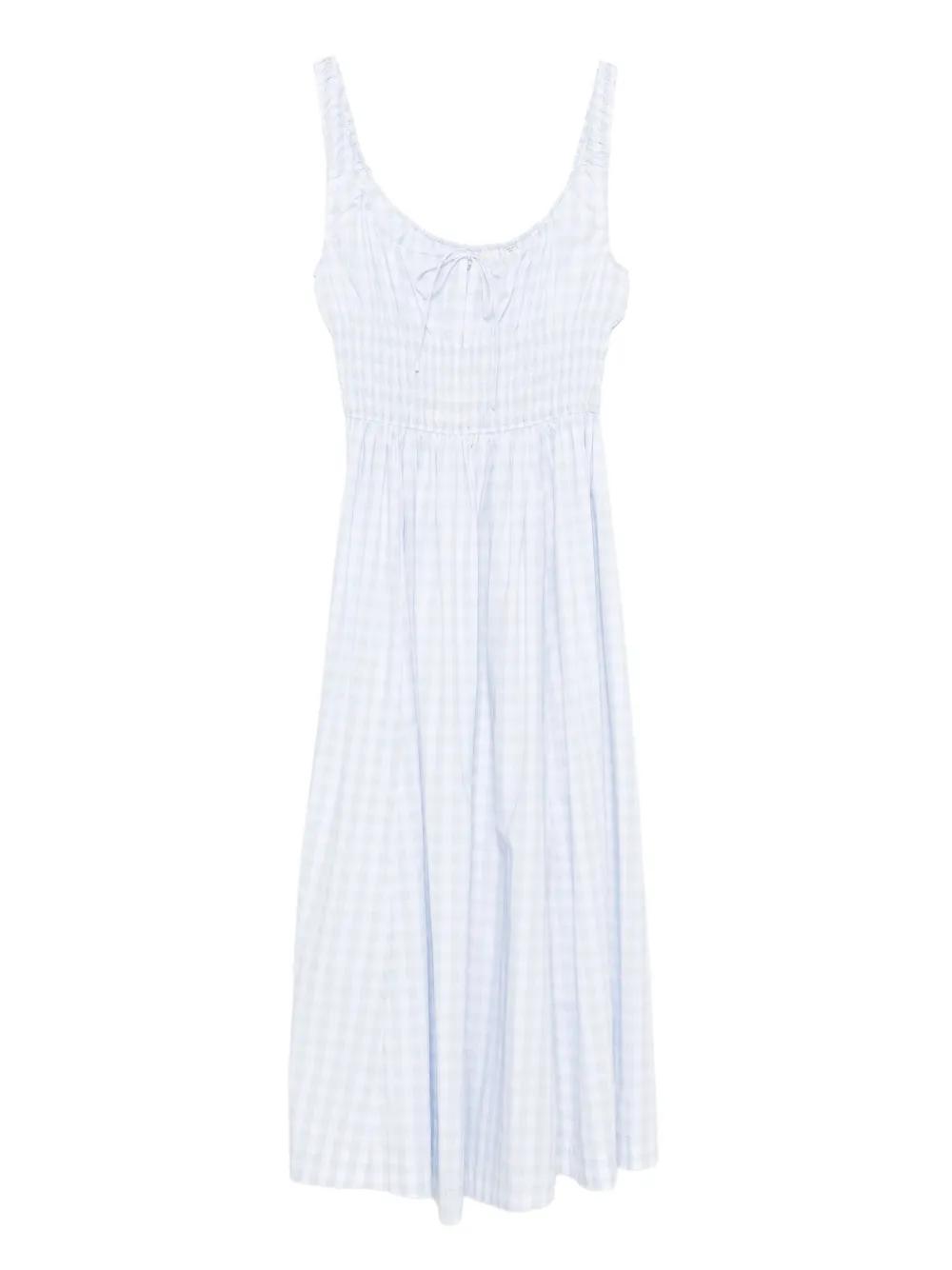 black semi-sheer construction lace trim pleat detailing square neck sleeveless flared thigh-length pull-on style