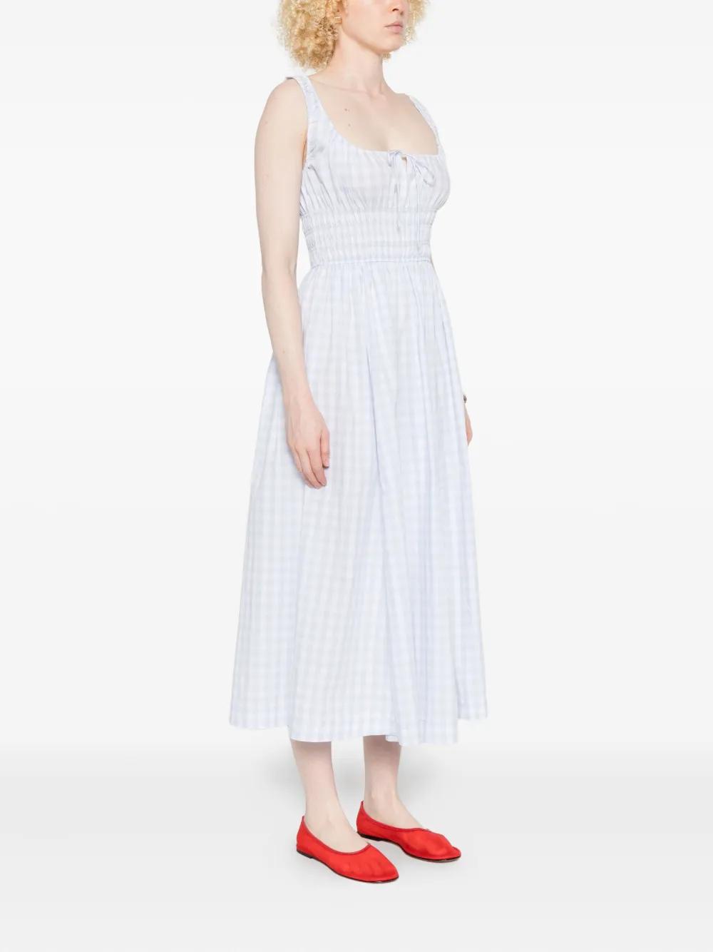 light pink floral-lace detailing embroidered logo rear zip fastening round neck long sleeves mid-length scallop hem