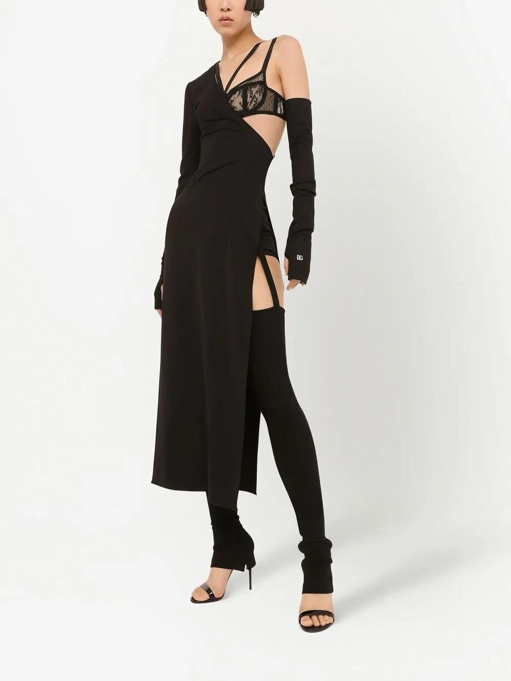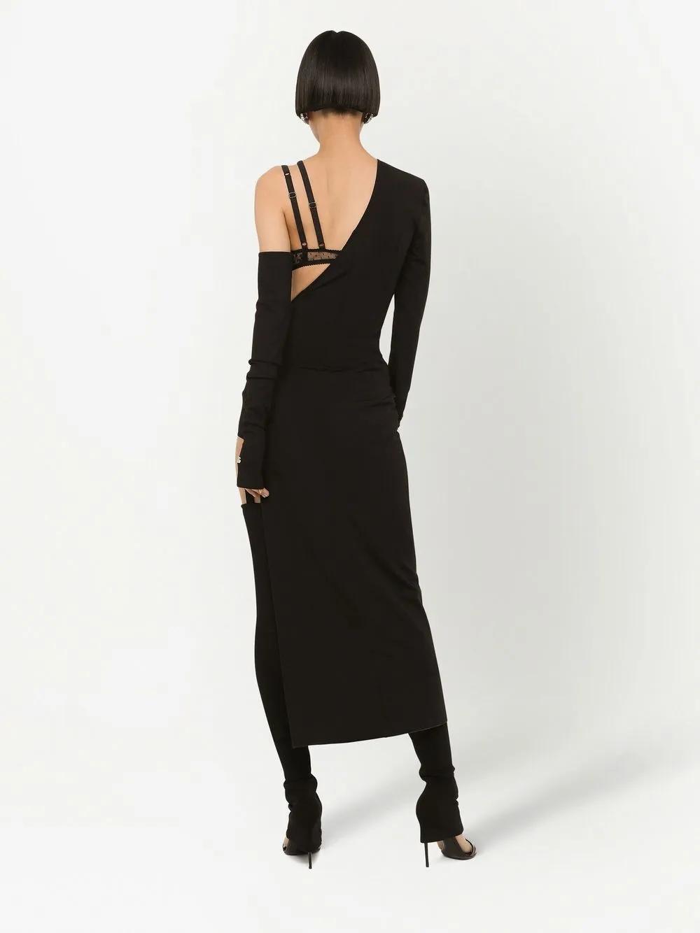 Dolce & Gabbana detachable-sleeve one-shoulder midi dress - Black