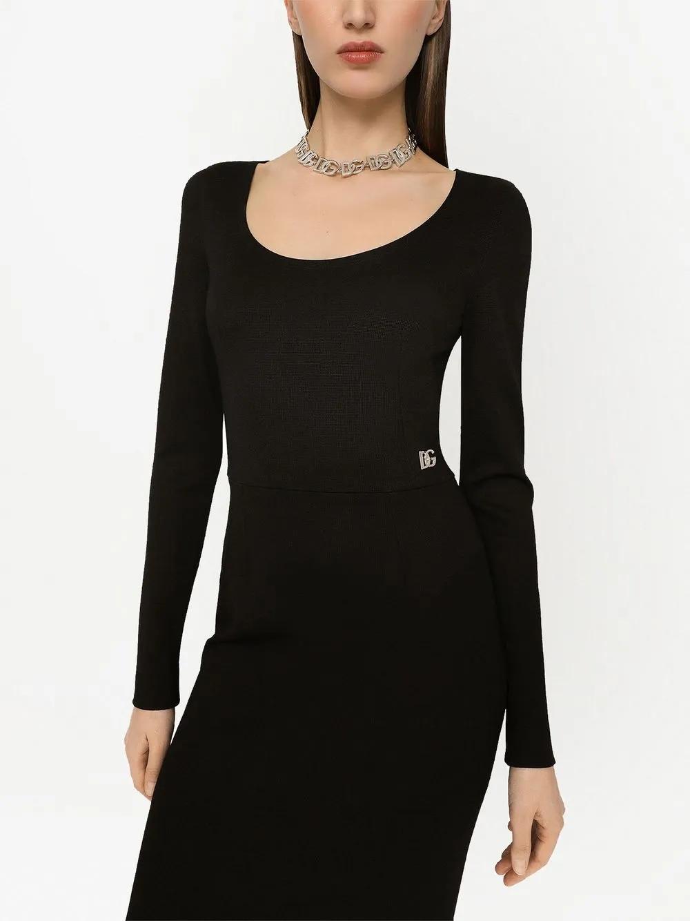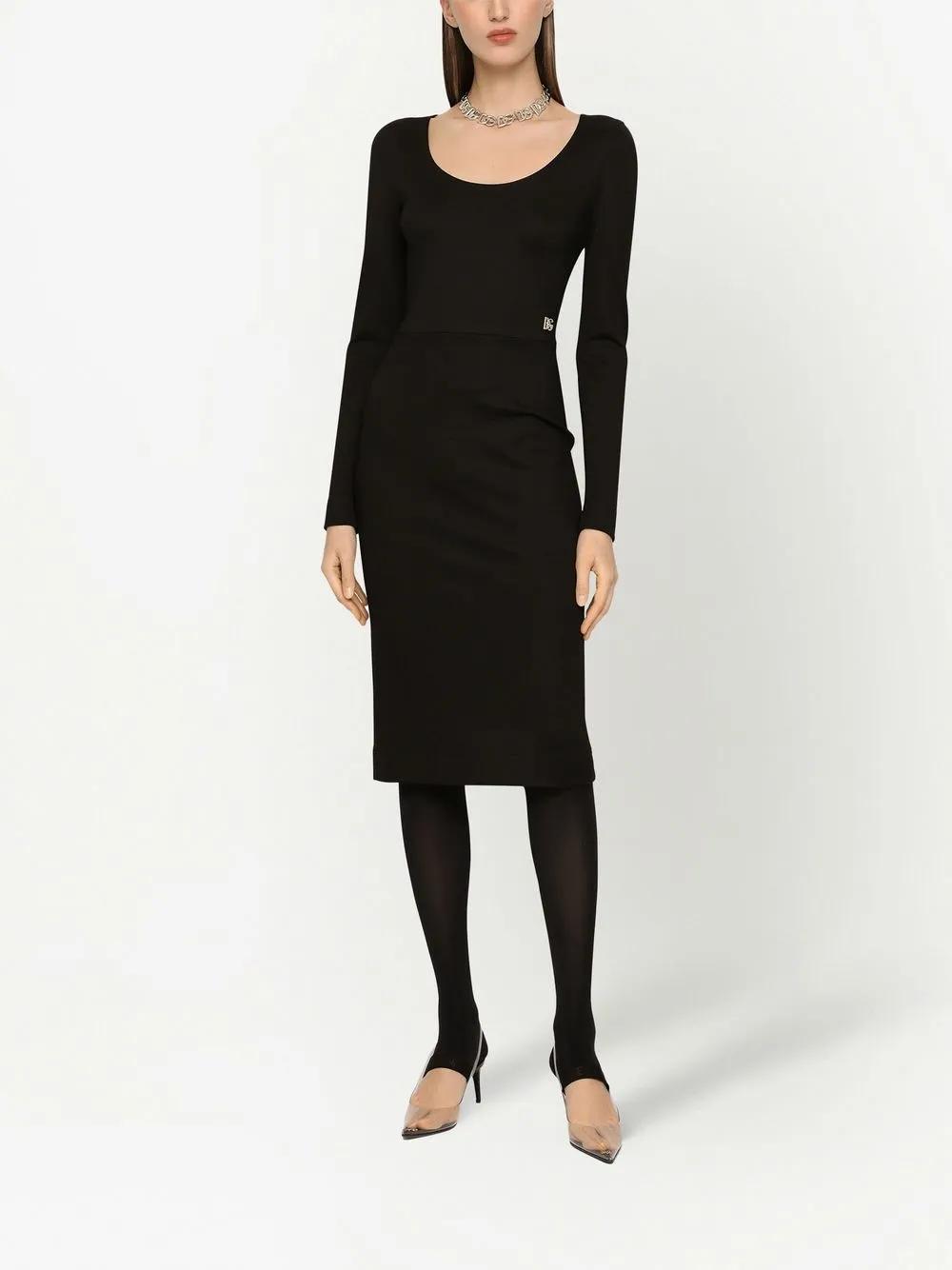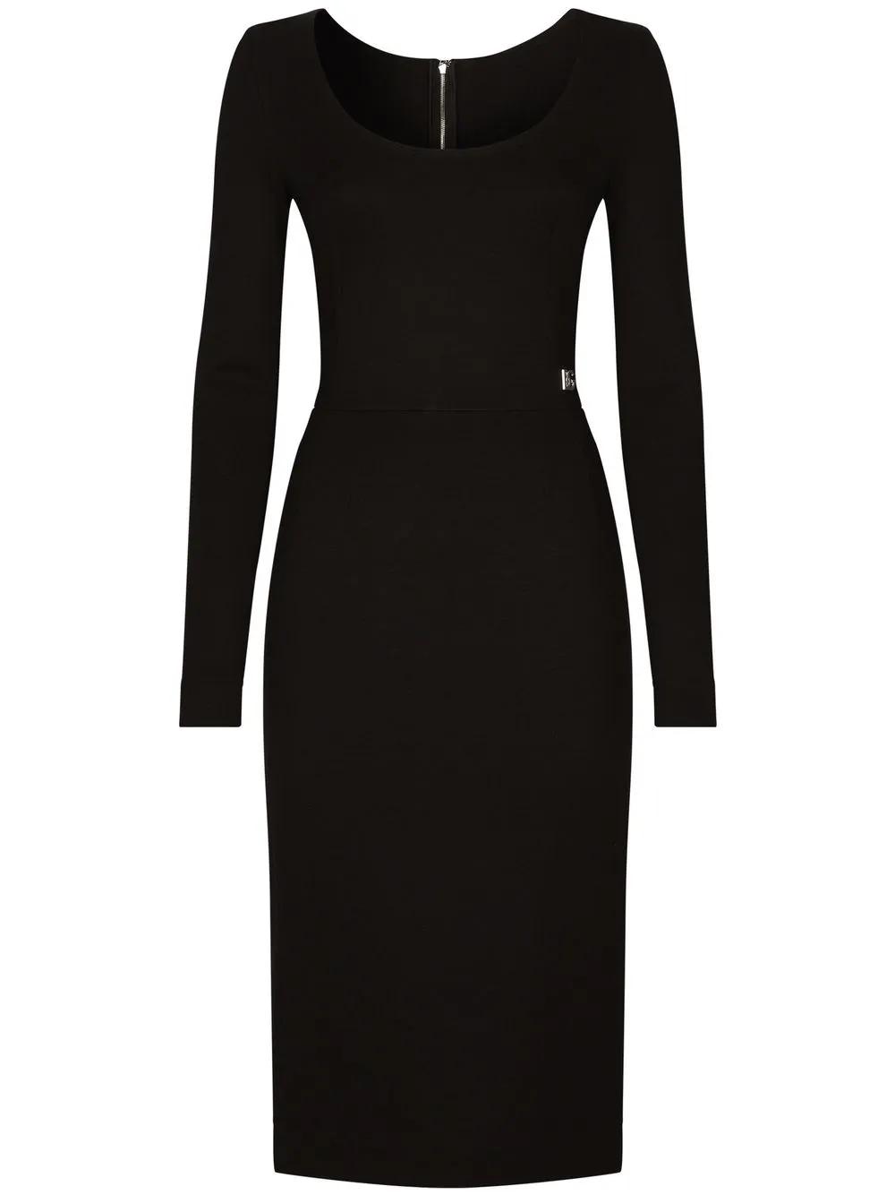 logo plaque-detail midi dress from DOLCE & GABBANA featuring black, stretch-jersey, logo plaque, scoop neck, long sleeves and rear zip fastening.