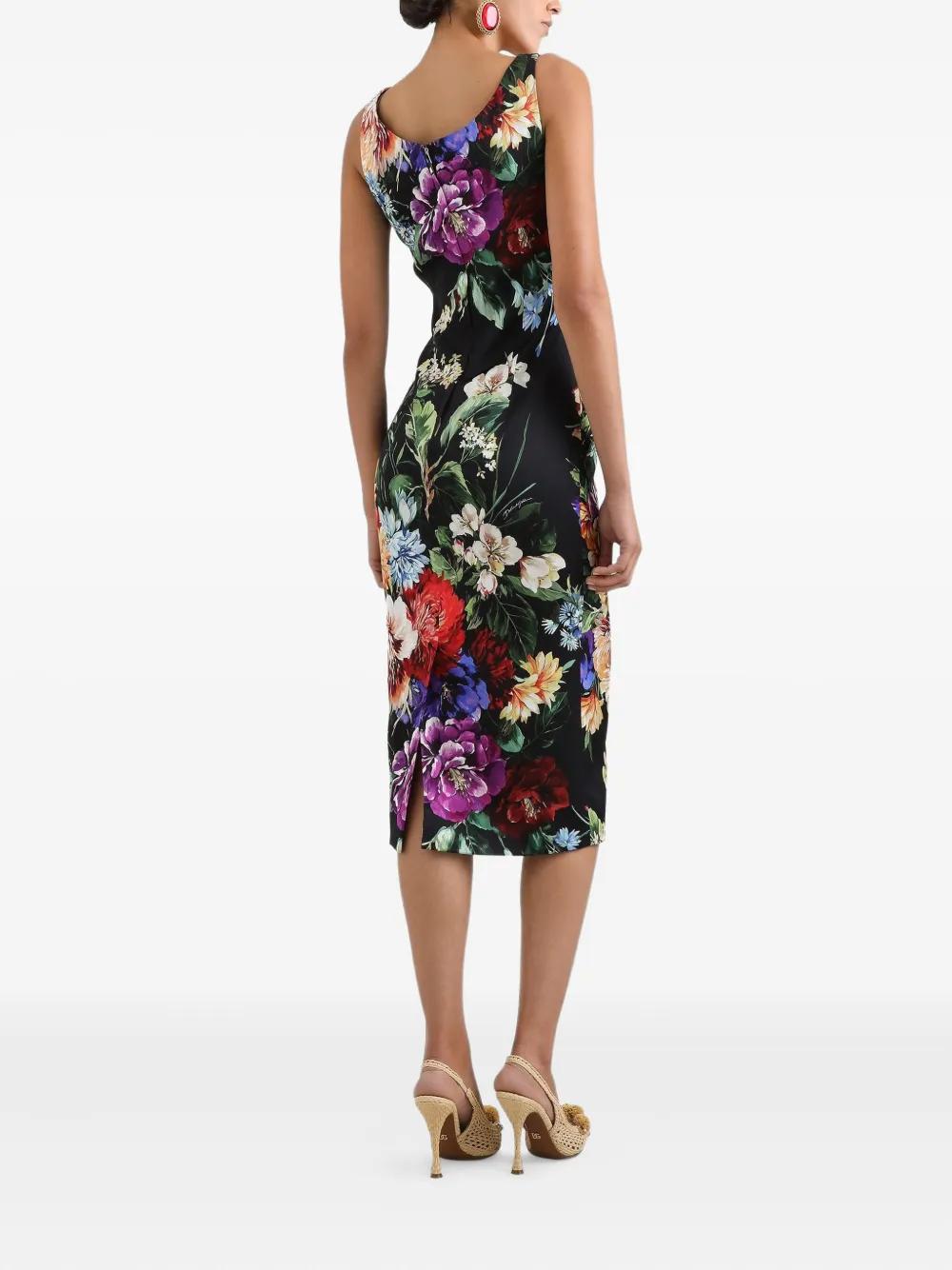 multicolour rear zip fastening scoop neck sleeveless straight hem