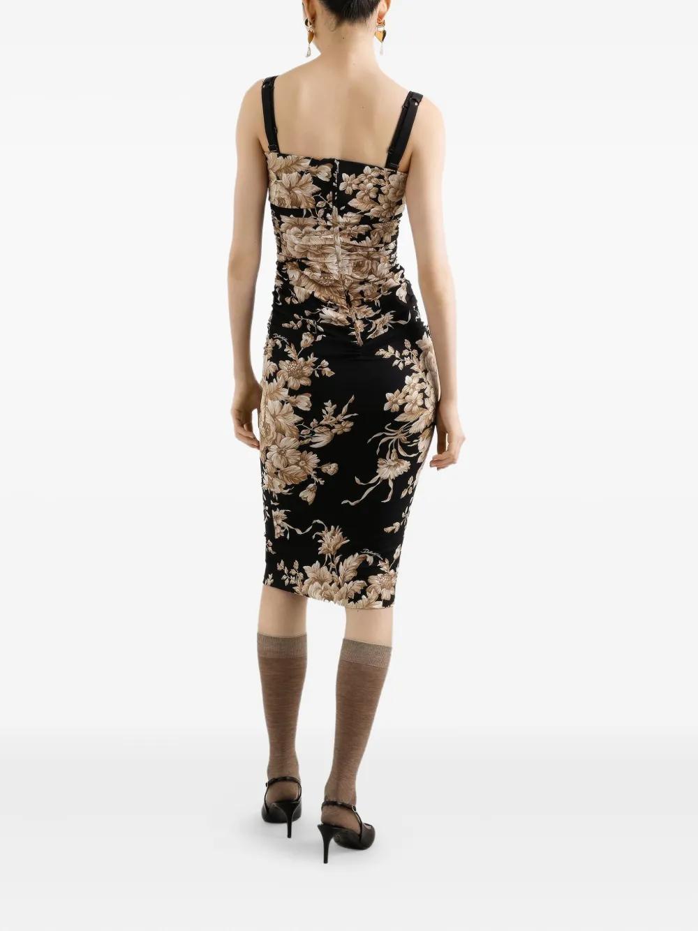 Dolce & Gabbana floral-print ruched midi dress - Black