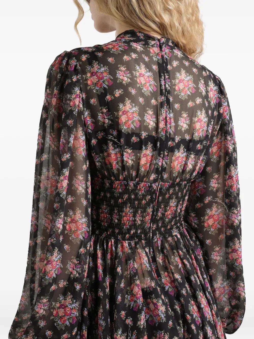 Dolce & Gabbana long-sleeves floral midi dress - Black