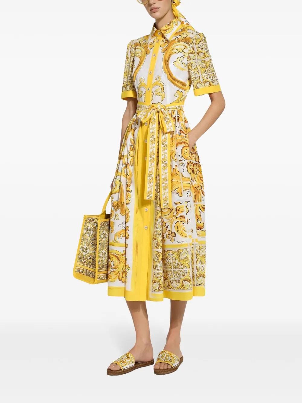 Dolce & Gabbana Majolica-print cotton shirtdress - Yellow