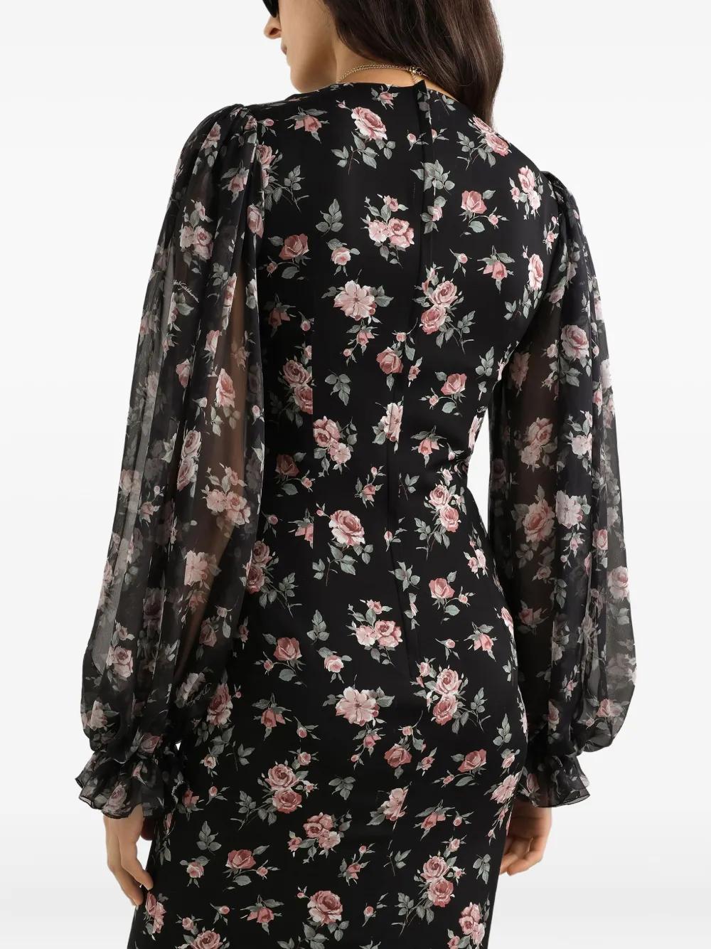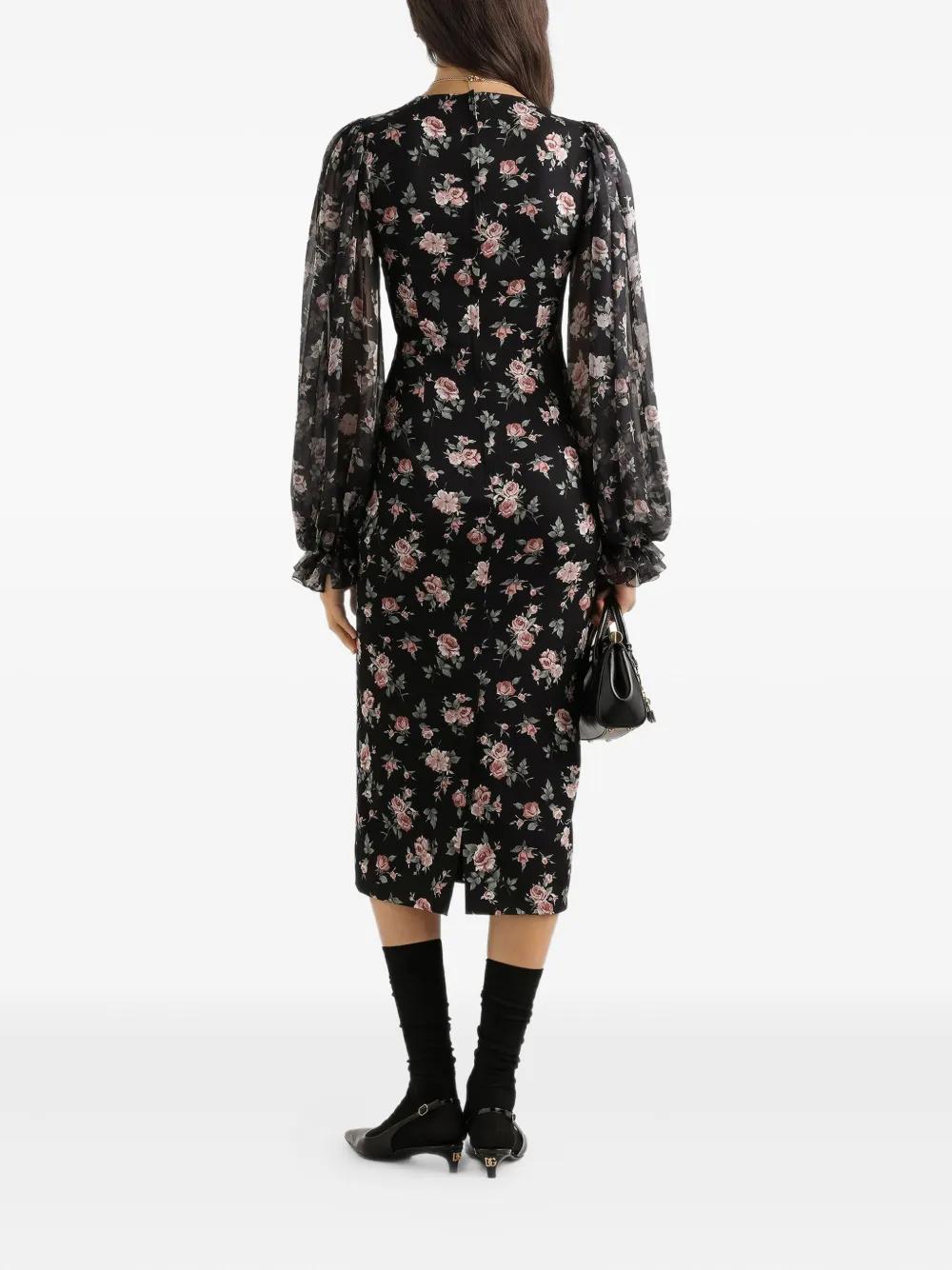 Dolce & Gabbana puff-sleeve floral midi dress - Black